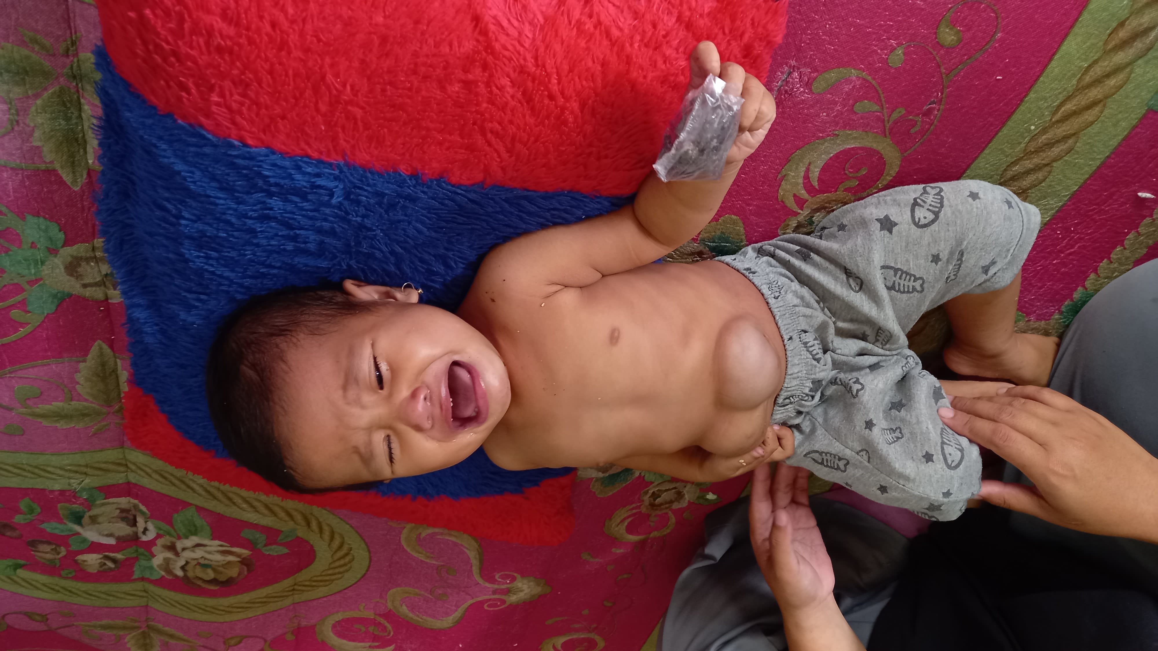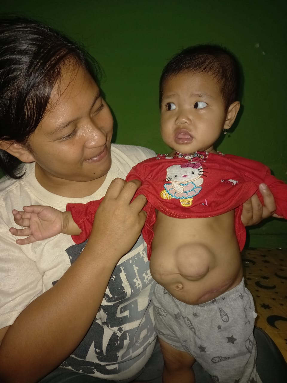Benjolan sebesar bola pingpong terbentuk jelas di perut Anisa (2 thn), mulanya Anisa mengalami kelainan pada ususnya sehingga harus dilakukan operasi kolostomi dan pengeluaran melalui usus. Ujian itu sudah terlalui, titik terang mulai ditemui, kondisi Anisa semakin membaik dan ususnya sudah bisa disambung kembali.