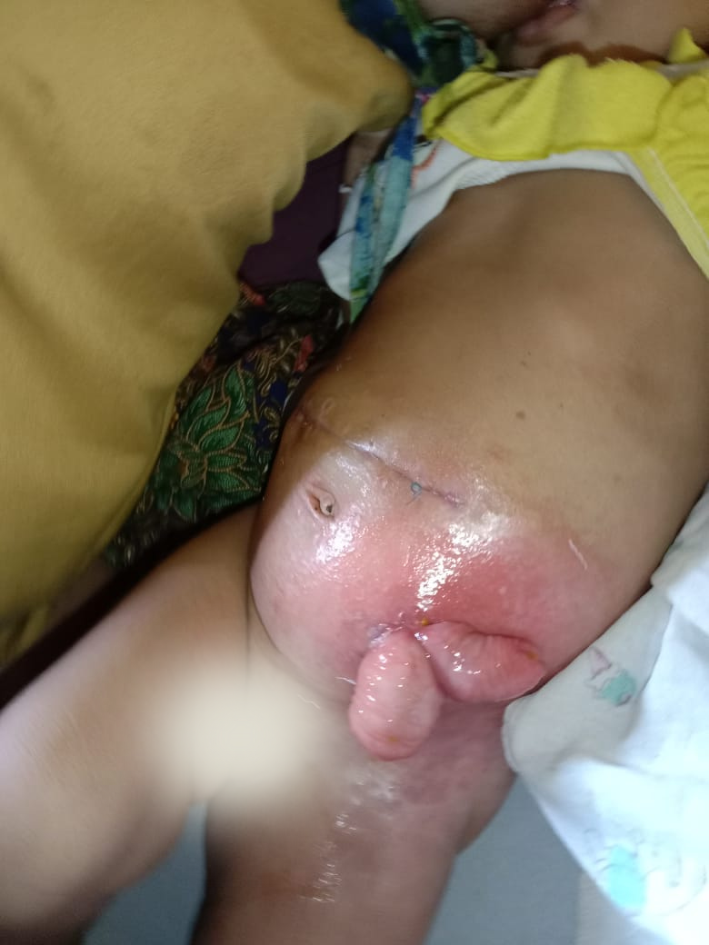 Keadaan ini membuat usus yang berada di dalam perut menonjol terbentuk tepat di bagian bekas jahitan operasi yang dilakukan sebelumnya. Seringkali Anisa memegangi benjolan yang ada di perutnya karena merasa aneh.
