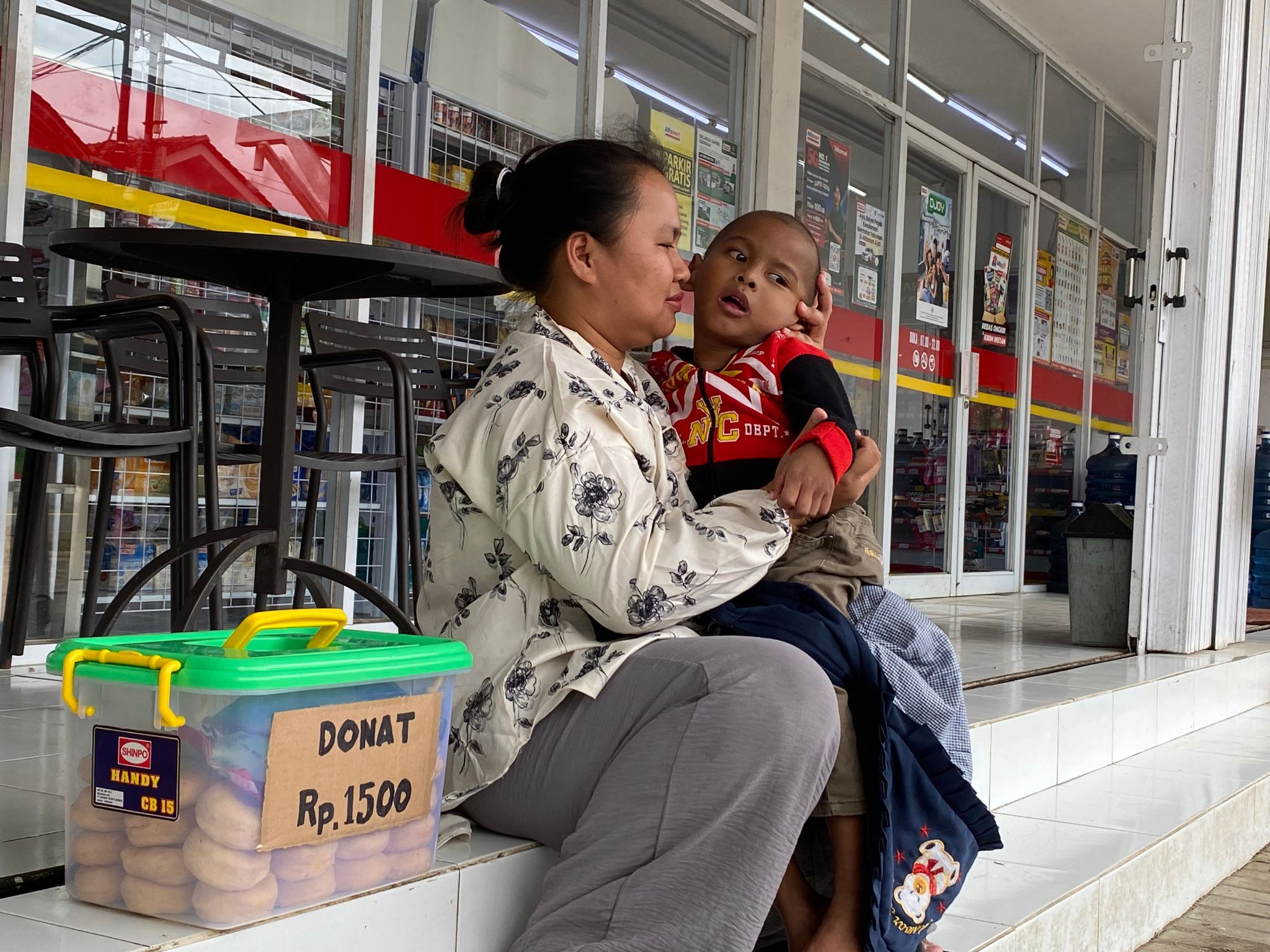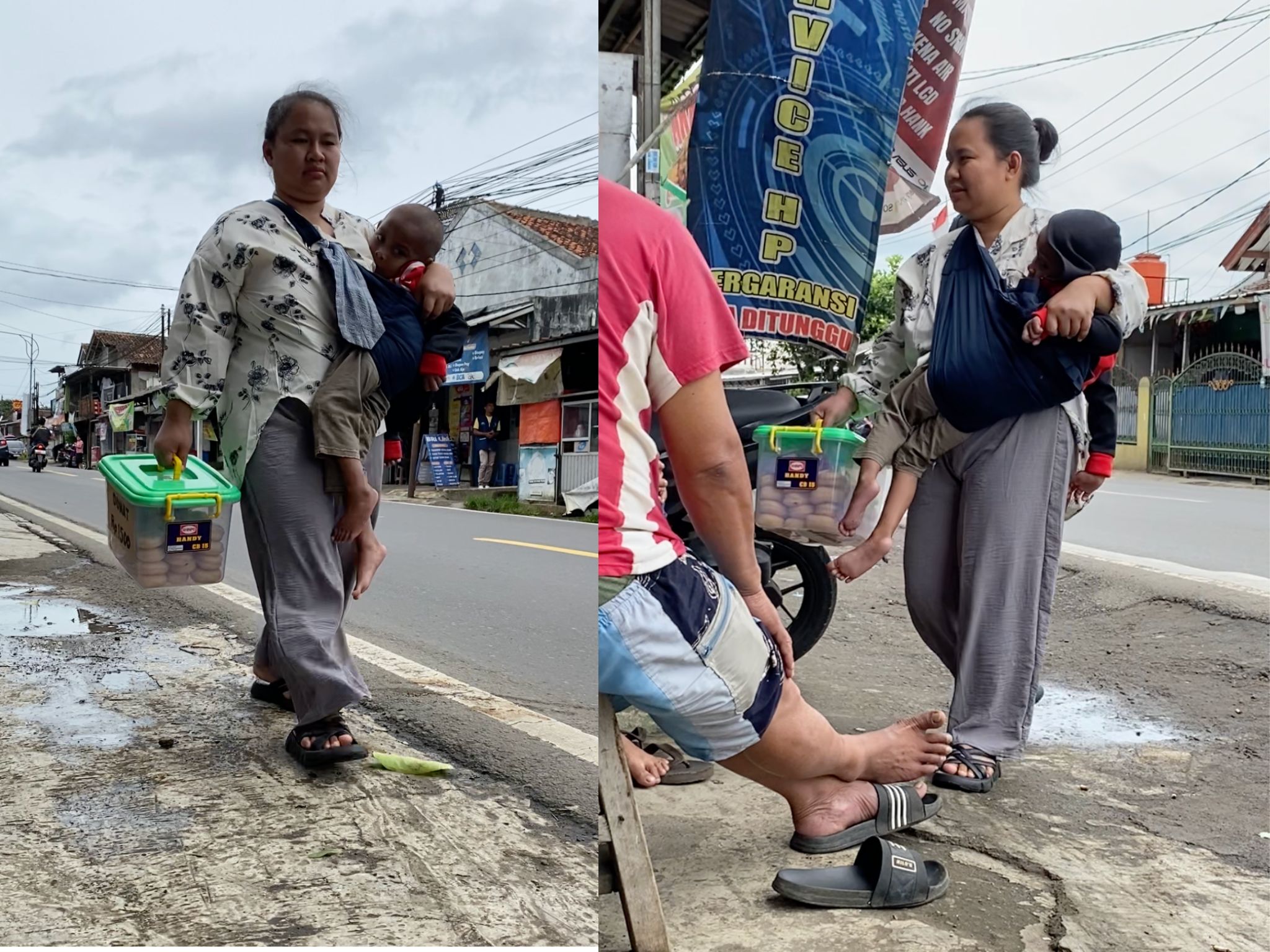 Panas terik matahari Ibu Elas (35thn) bersama Adik Rifan berjuang jualan donat keliling jalan kaki tempuh berkilo meter, demi bisa makan dan berobat.