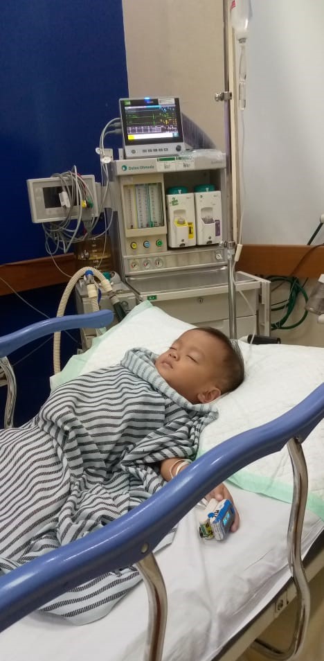 Lahir caesar dengan BB 1,8 kg, tak pernah mereka sangka pencernaan bayi kecilnya juga rusak hingga tak sadarkan diri dan harus masuk ICU di usia 2 bulan karena BAB darah hingga transfusi akibat kehabisan banyak darah.