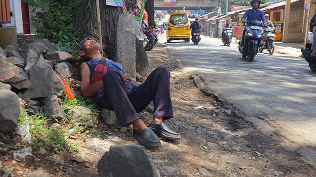 Siang tadi, Tepatnya dipinggir jalan kami semua bertemu dengan kakek bernama Pak Asep Sopandi (68), Ia sedang terbaring lemas di atas bebatuan sembari memegang lap Oren.