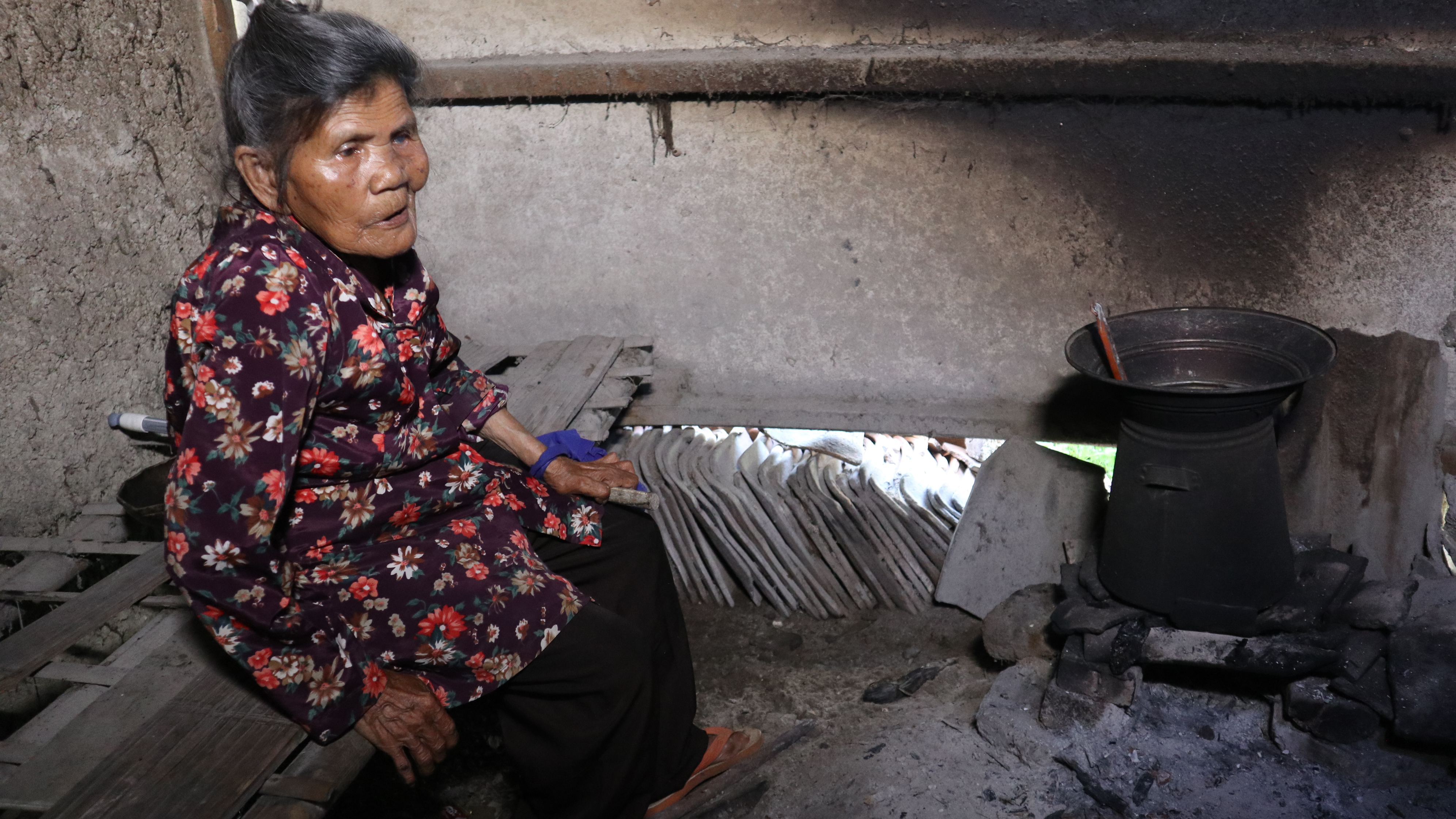 "Alhamdulillah di pengker masih aya hawu kanggo naheur cai, bari di cacapa Oge Emak masih tiasa naheur cai. Suluh namah mulungan di jalan atawa sok aya murangkalih nu masihan (alhamdulillah di belakang masih ada tungku buat memasak air, pakai kayu bakar hasil memulung di jalan atau di beri anak-anak tetangga)" Emak mengisahkan sambil menunjukan tempatnya memasak air.