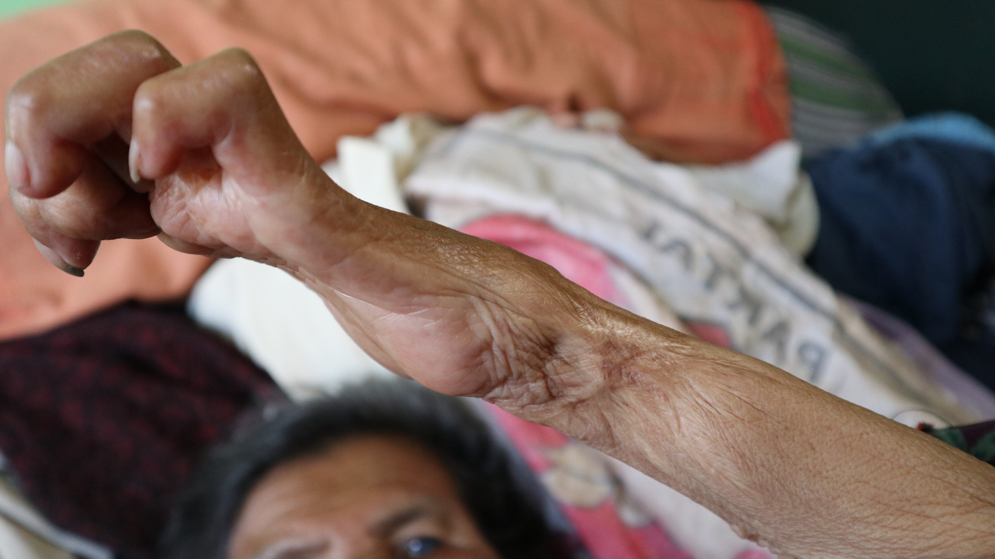 Bukan hanya memiliki keterbatasan penglihatan, namun sebelah tangan emak pun tak dapat digerakan karena tulang lengan yang melekuk kedalam dan sedikit bengkok akibat terkena serpihan mortir saat sedang mencari rumput di area Latihan militer, sehingga terasa kaku saat digerakkan.