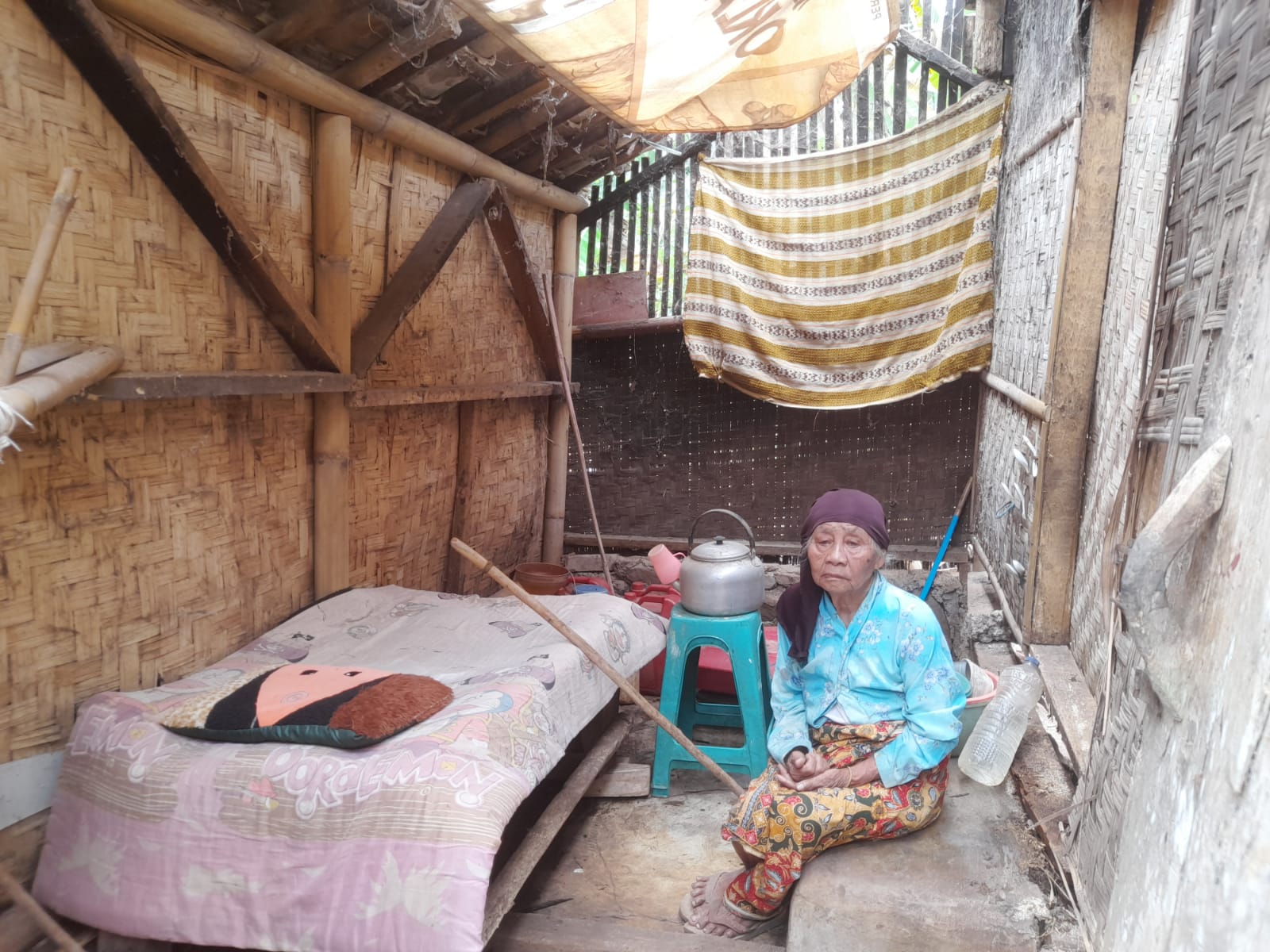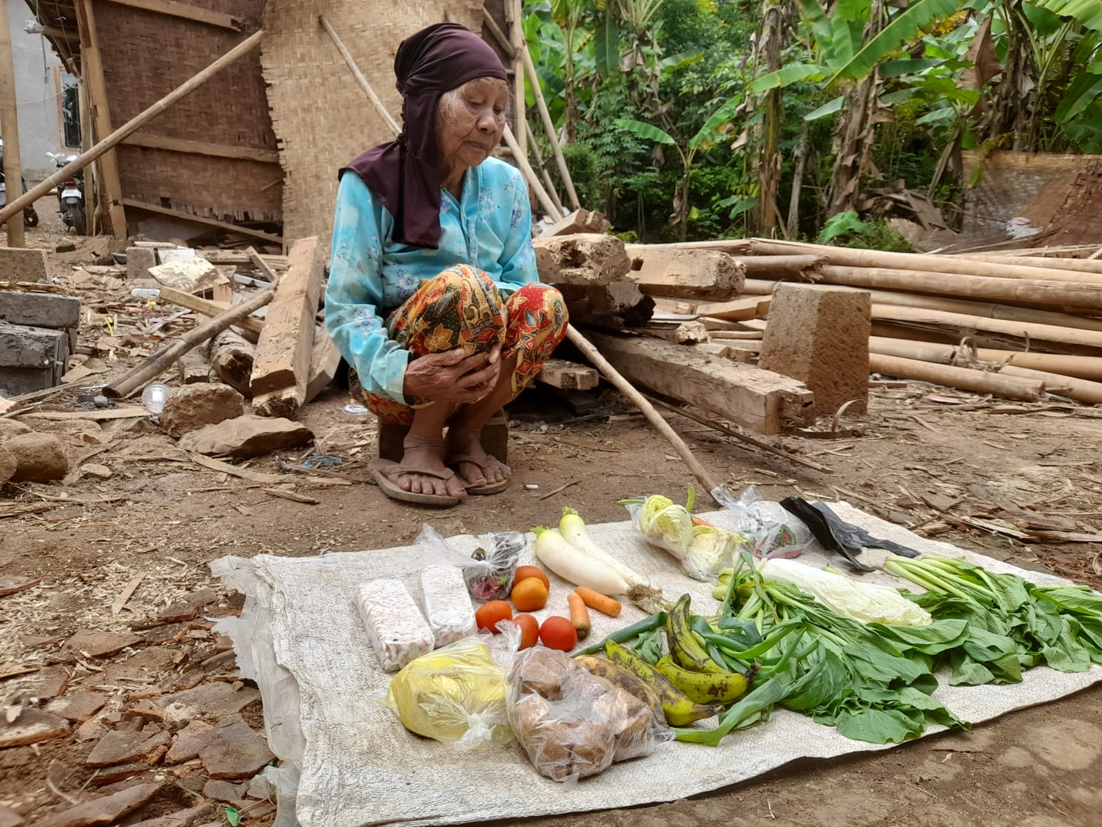 Sedih...Hidup sebatangkara di gubuk hampir roboh, Mak Emin (83 tahun) hanya bisa bertahan hidup dari berjualan sayur.