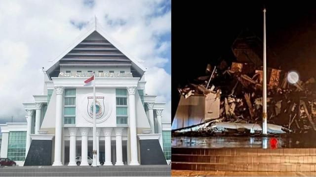 Kondisi Kantor Gubernur Sulbar Sebelum dan Sesudah Gempa