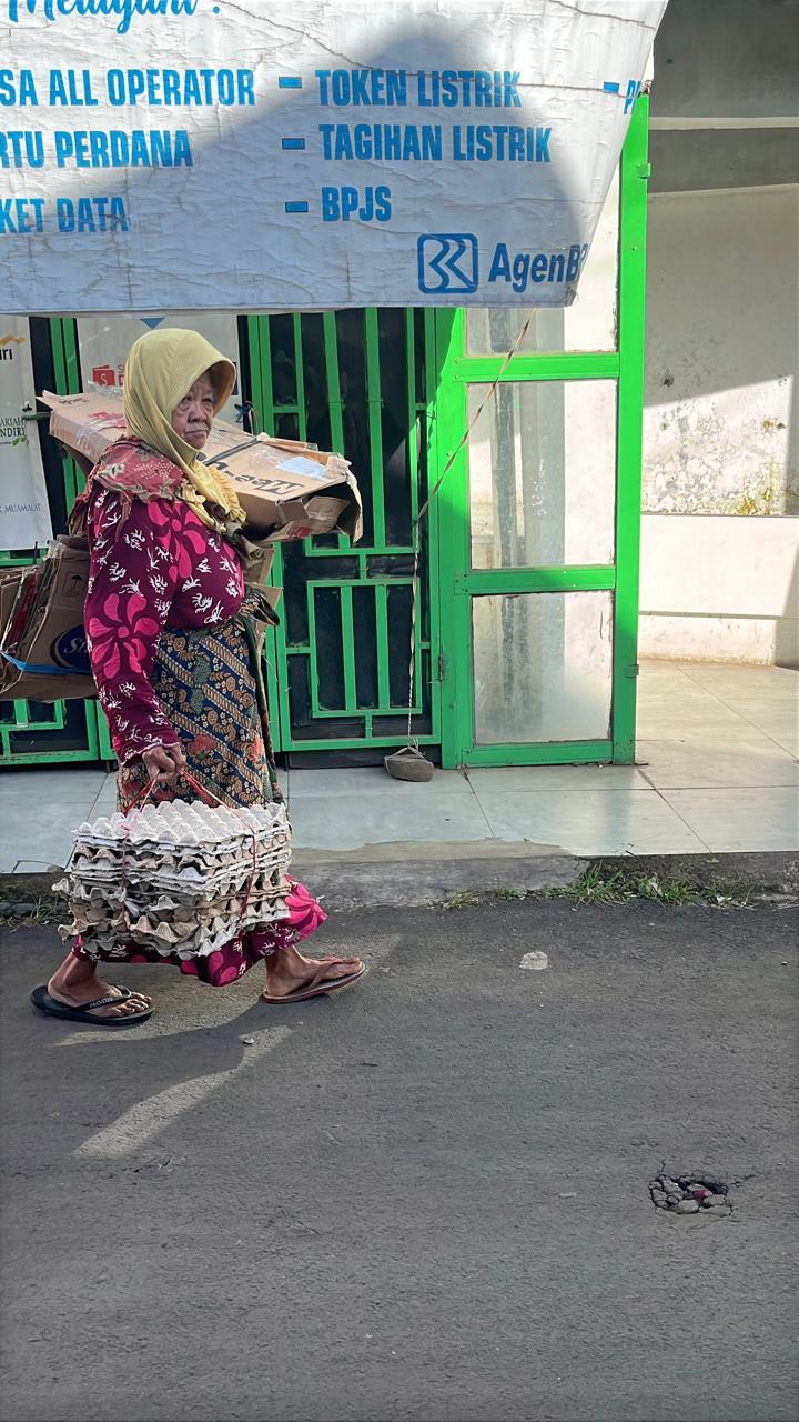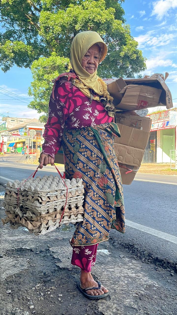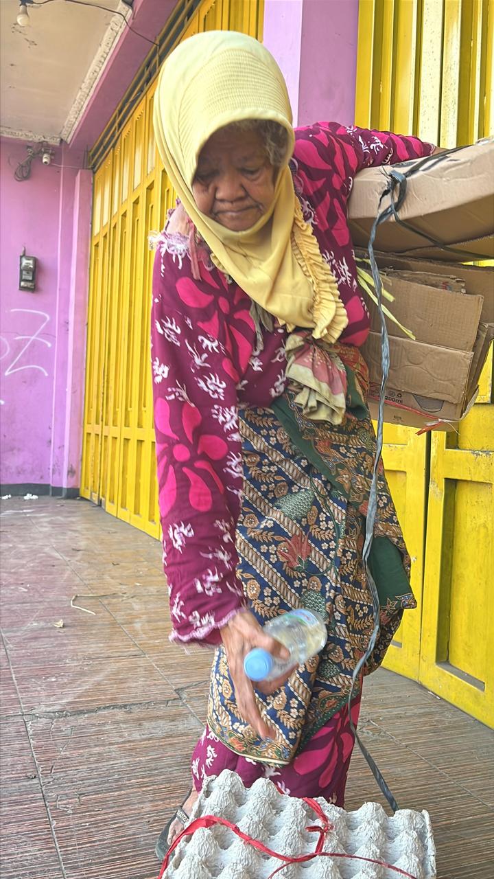Mak Darmi membawa berkarung-karung barang rongsok, tapi hanya ia dapat 8rb rupiah.