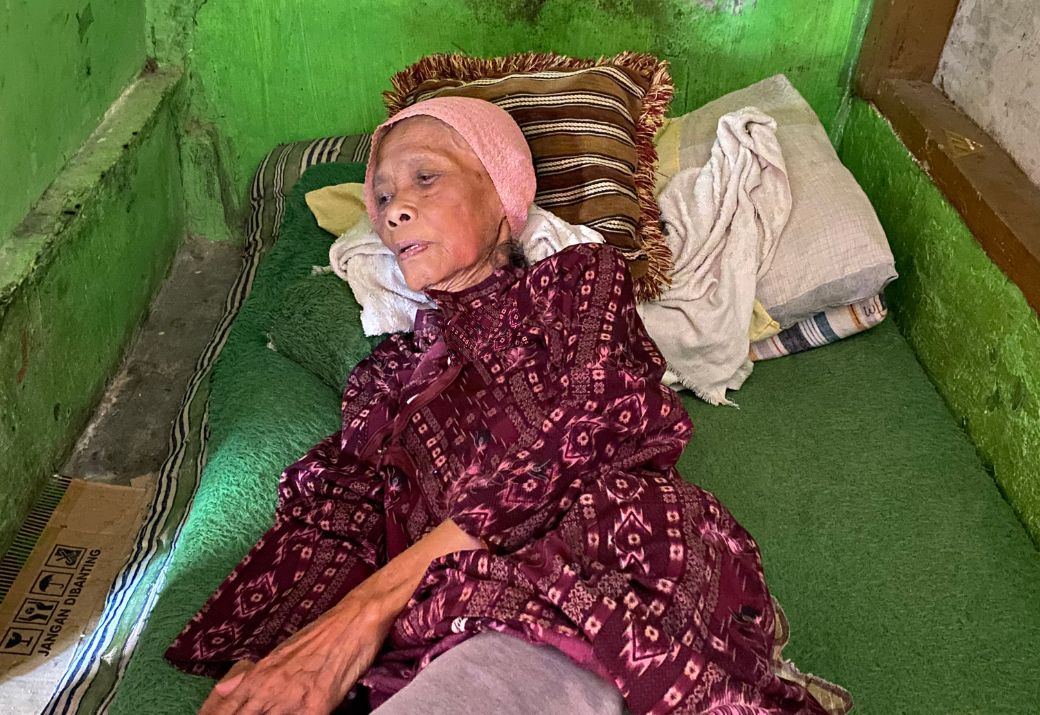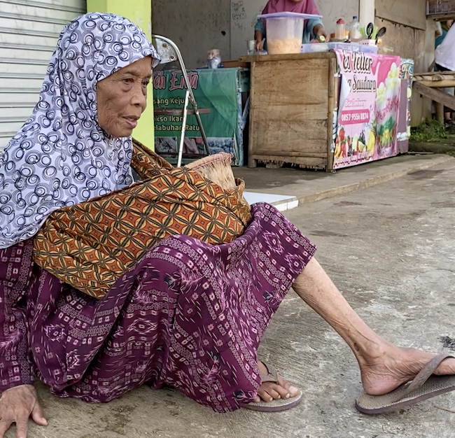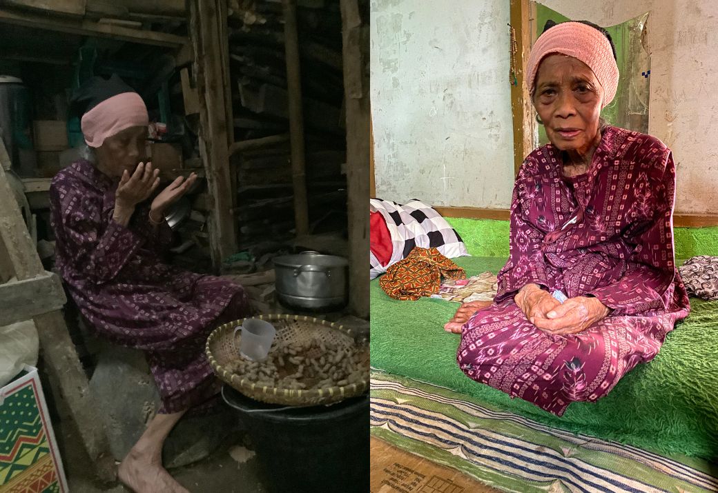 Tubuh Mak Nining sudah renta, bahkan kakinya sudah tak lagi mampu berdiri (lumpuh) akibat pengapuran tulang. Mak jalannya gesod pelan-pelan, berjuang melawan sakit di tubuh tuanya.