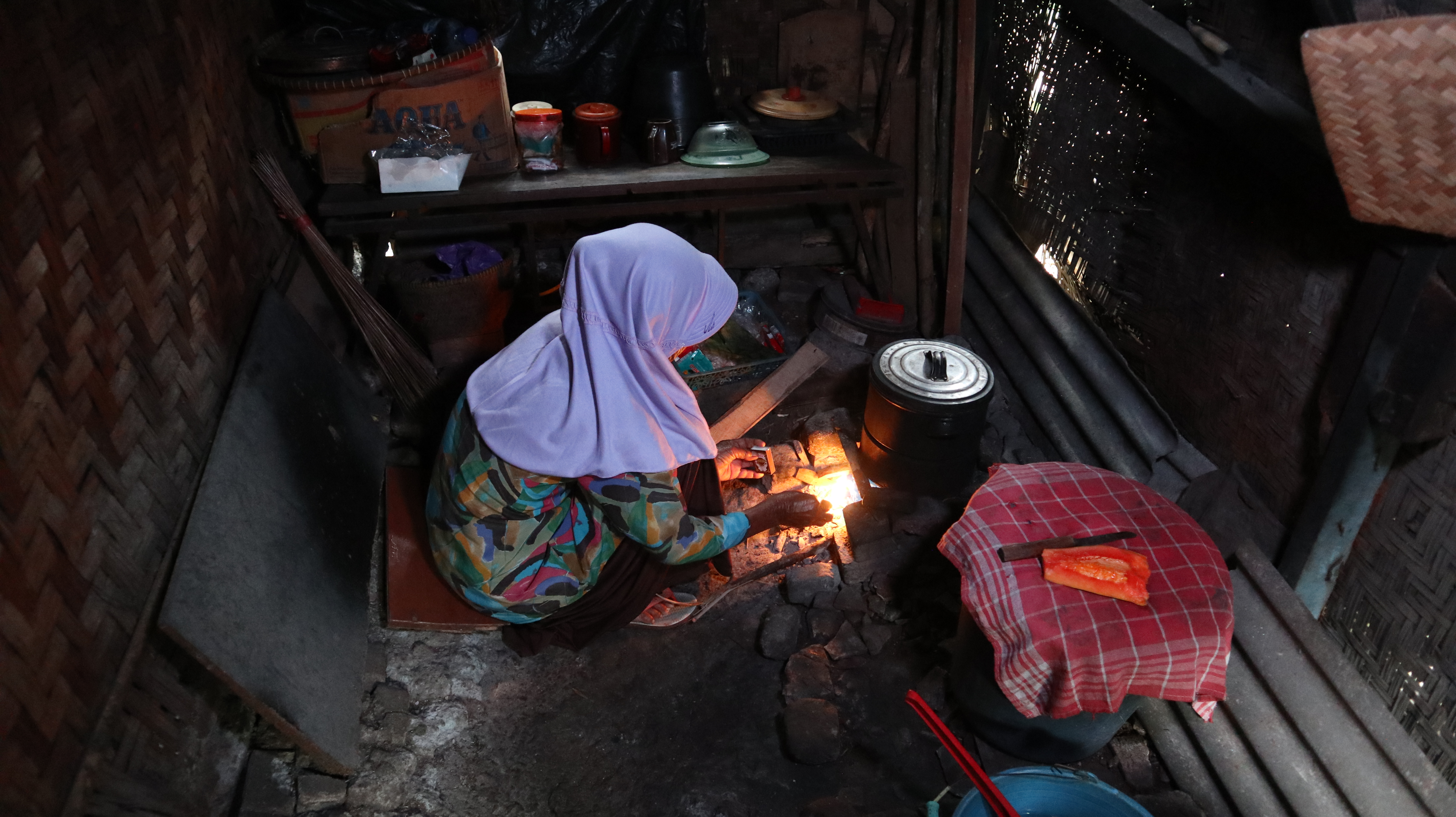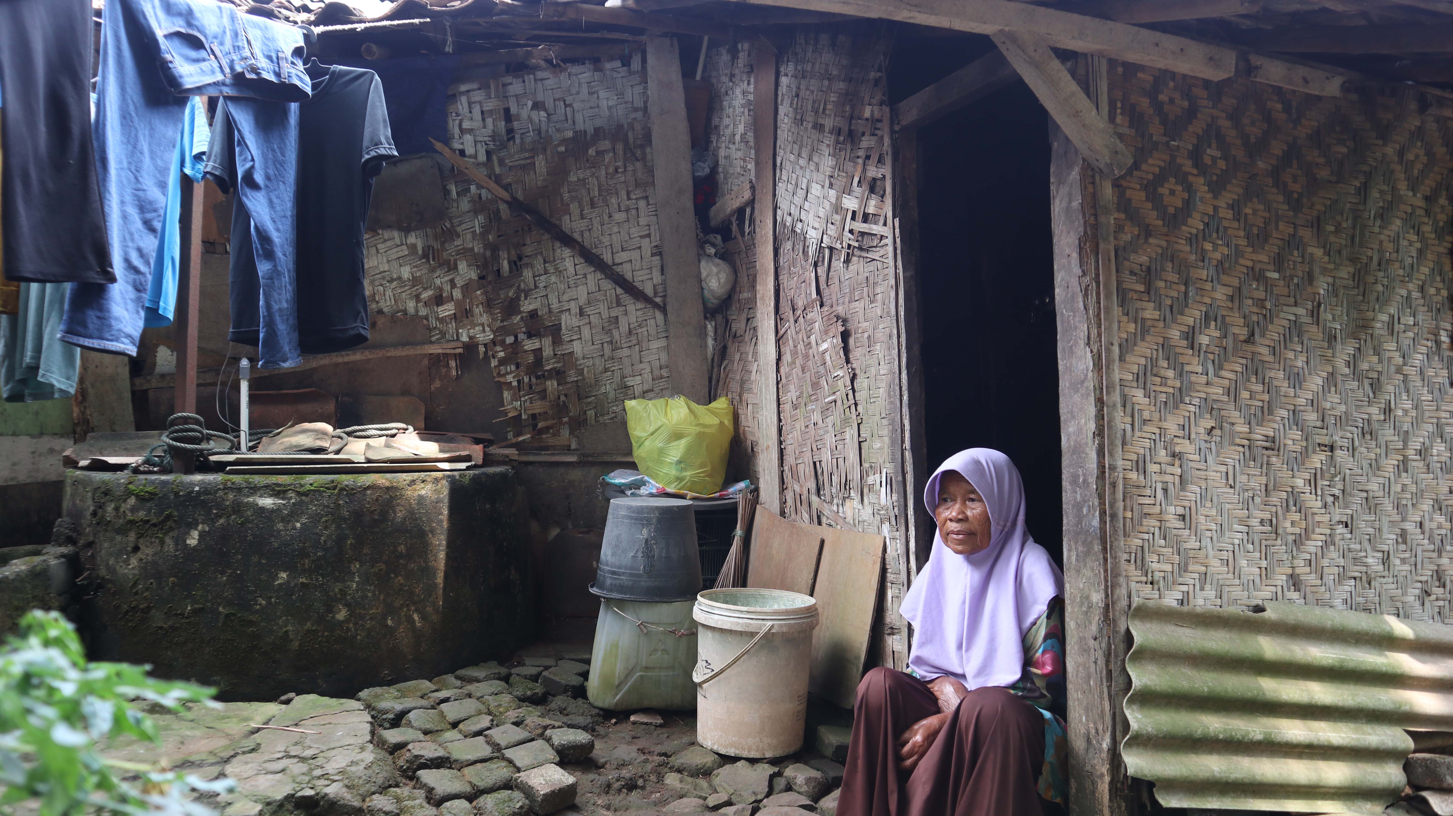Di bawah atap gubuk 3x4 meter yang pengap, gelap, bocor, dan keropos itu Nek Mamah (71) tinggal seorang diri. Suaminya telah meninggal dunia dan tidak punya keturunan. Di dalam gubuknya hanya ada meja kecil, kasur lantai yang sudah usang, dan peralatan masak tradisional seperti panci dan kayu bakar.