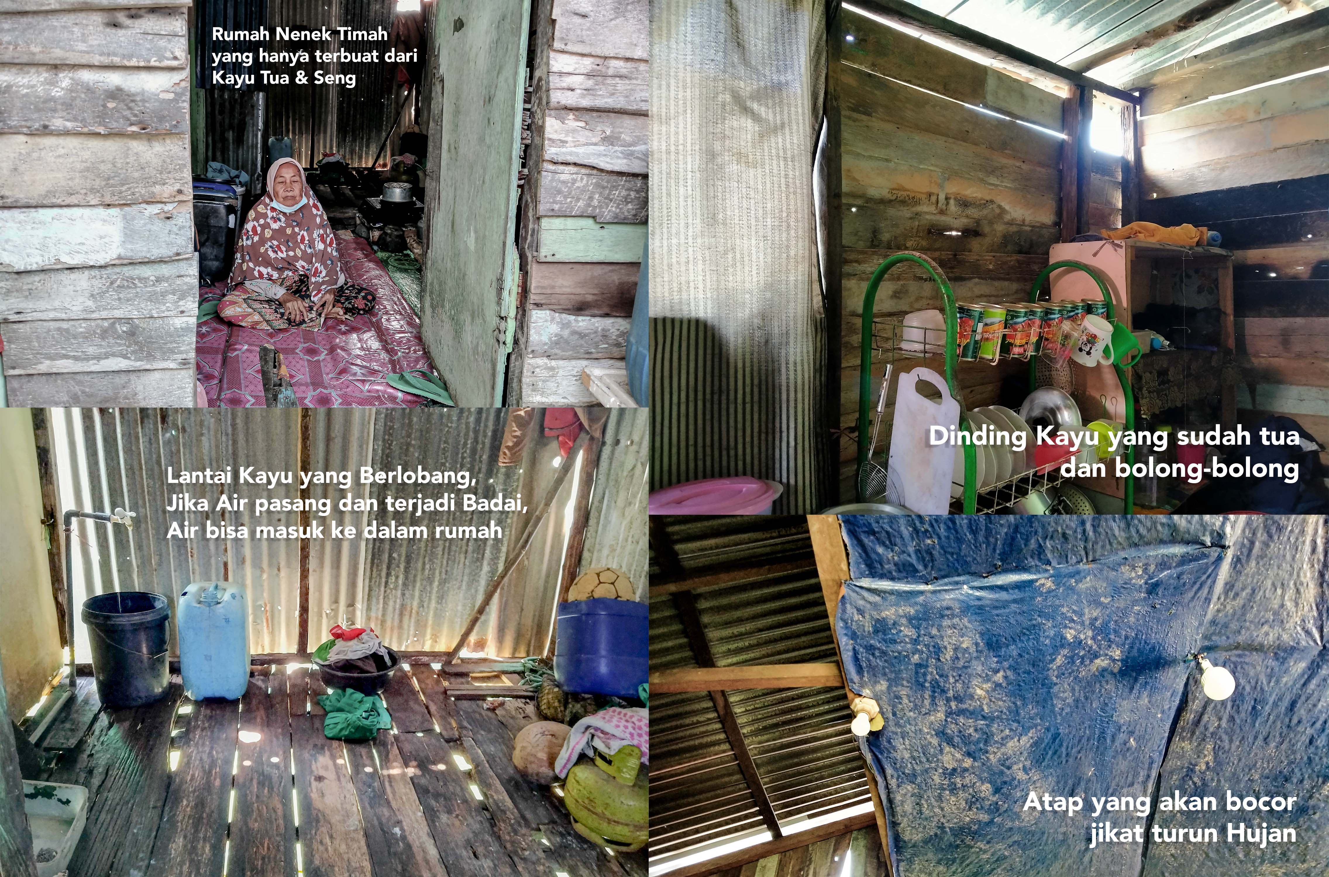 Nenek ini bernama Nek Timah binti Senin, tidak seperti orang pada biasanya Nek Timah yang menjanda selama 20 tahun ini tinggal di rumah panggung atas laut yang tidak layak huni.
