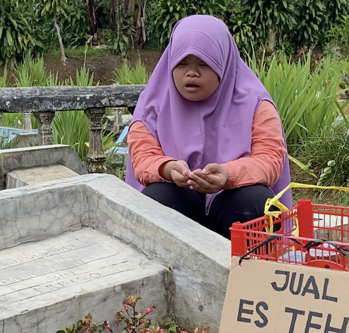 “Bapak udah gak ada, meninggal. Nur sayang sama bapak, Nur selalu do’ain bapak. dan Nur pengen selalu bantu dan jagain Ibu”. Kata Nur meski ucapanya tak begitu jelas