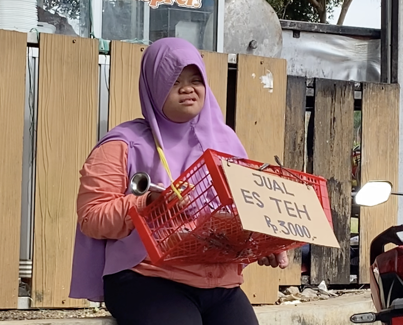 Terlahir berbeda dan keterbelakangan mental, Disebut manusia seribu wajah (Down Syndrome) tak menghalangi Nur (14thn) untuk mengais rezeki. Meskipun memiliki perbedaan dengan yang lain ia tetap semangat dan berjuang menjalani hidup.