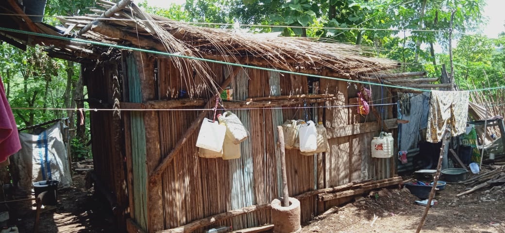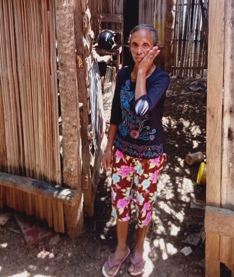 Oma Agustina tinggal bersama anaknya di rumah yang terbuat dari kayu dan bambu, beralaskan tanah, jauh dari kata nyaman. Jangankan ruang tamu, jamban pun tidak ada. Buang air besar harus menumpang ke tetangga dan buang air kecil mereka lakukan di jamban darurat. Tak terbayang bagaimana keadaan rumah mereka di musim hujan.