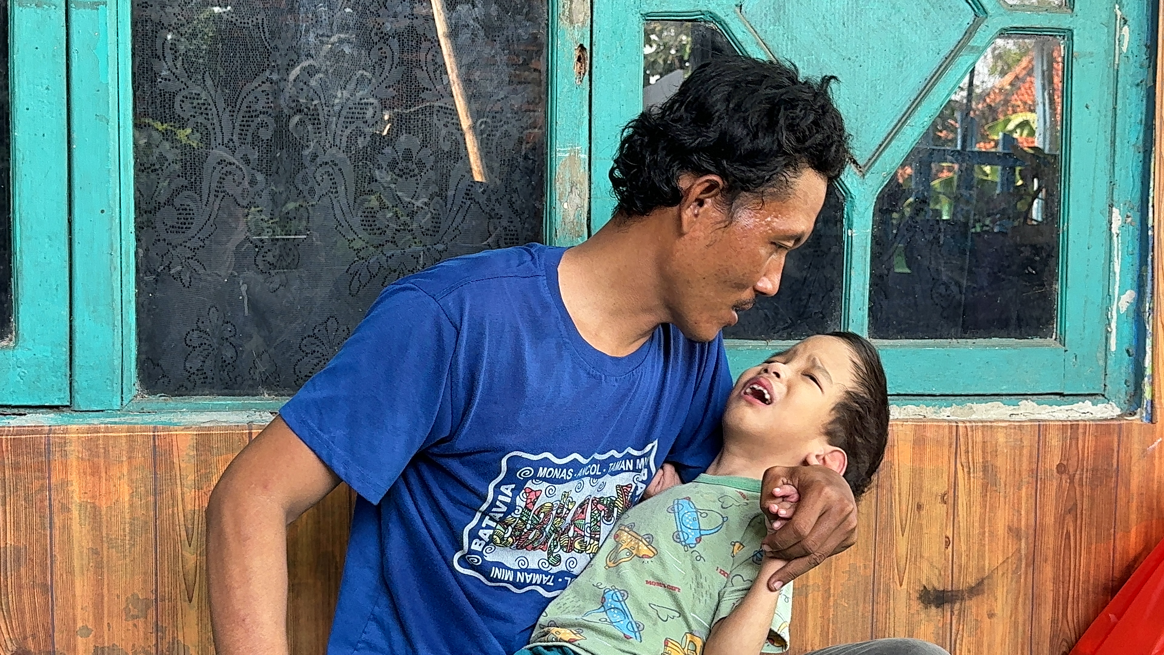 Pak Agung menahan tangis, teringat putranya yang divonis hidrosefalus dan membuat tumpukan cairan di kepalanya. Dia harus segera mengganti selang untuk mengeluarkan cairan di kepalanya. Namun ia tak punya biaya untuk membawa putranya berobat.