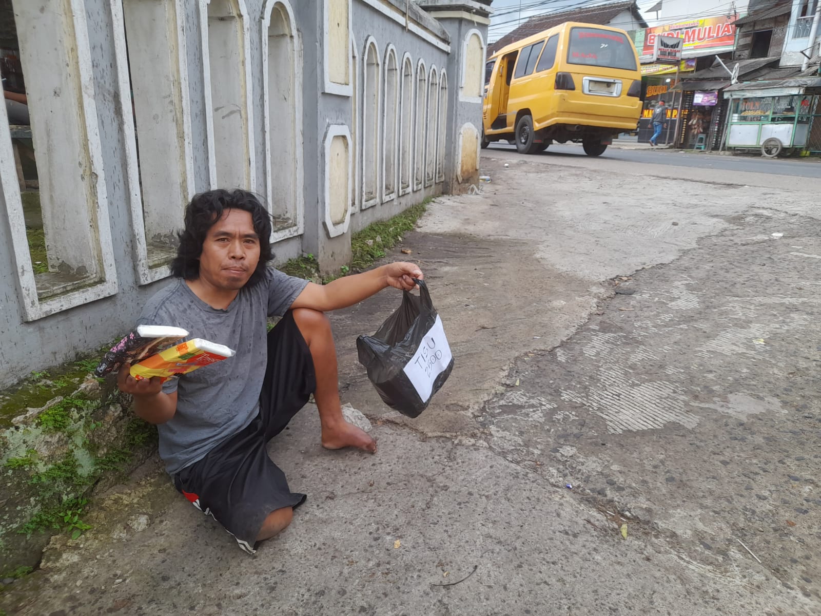 Setiap hari pak Dede menyusuri jalan raya berkilo-kilometer untuk menjajakan tisue dagangannya. Ini jelas bukanlah hal yang mudah untuk beliau karena keterbatasan fisiknya. Setiap tetes keringat yang menetes, pak dede berdoa bisa pulang dengan selamat dan keluarga kecilnya bisa makan dengan layak.