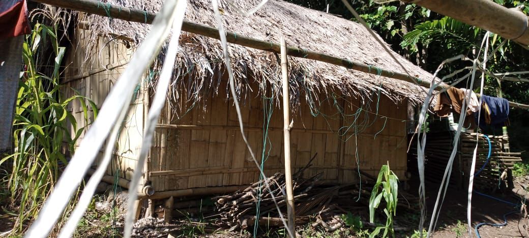 Rumahnya berada di tanah milik orang lain, tinggal jauh di dalam kebun dengan kondisi rumah darurat dari bambu dan ilalang yang menjadi tempat tinggal bapak nahrudin dan istrinya beserta 3 orang anak.