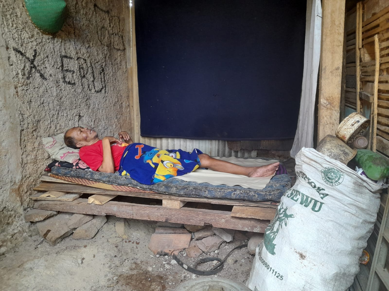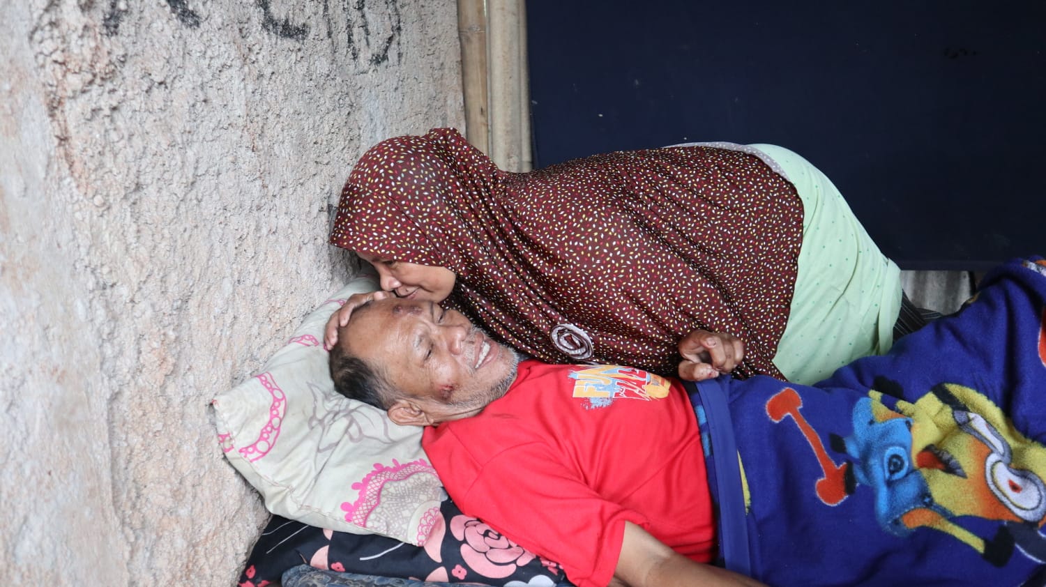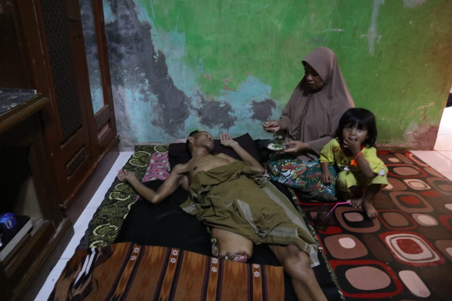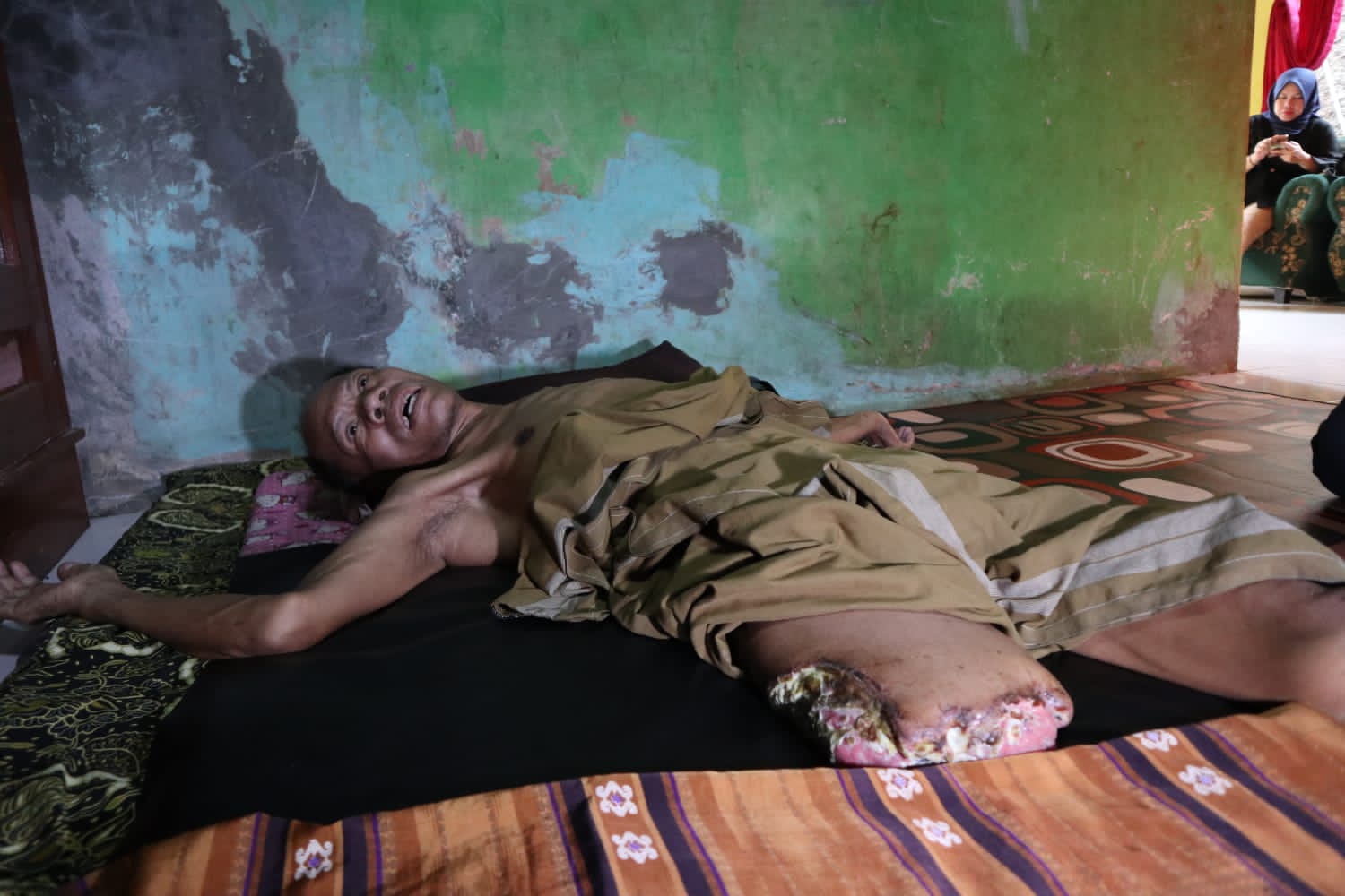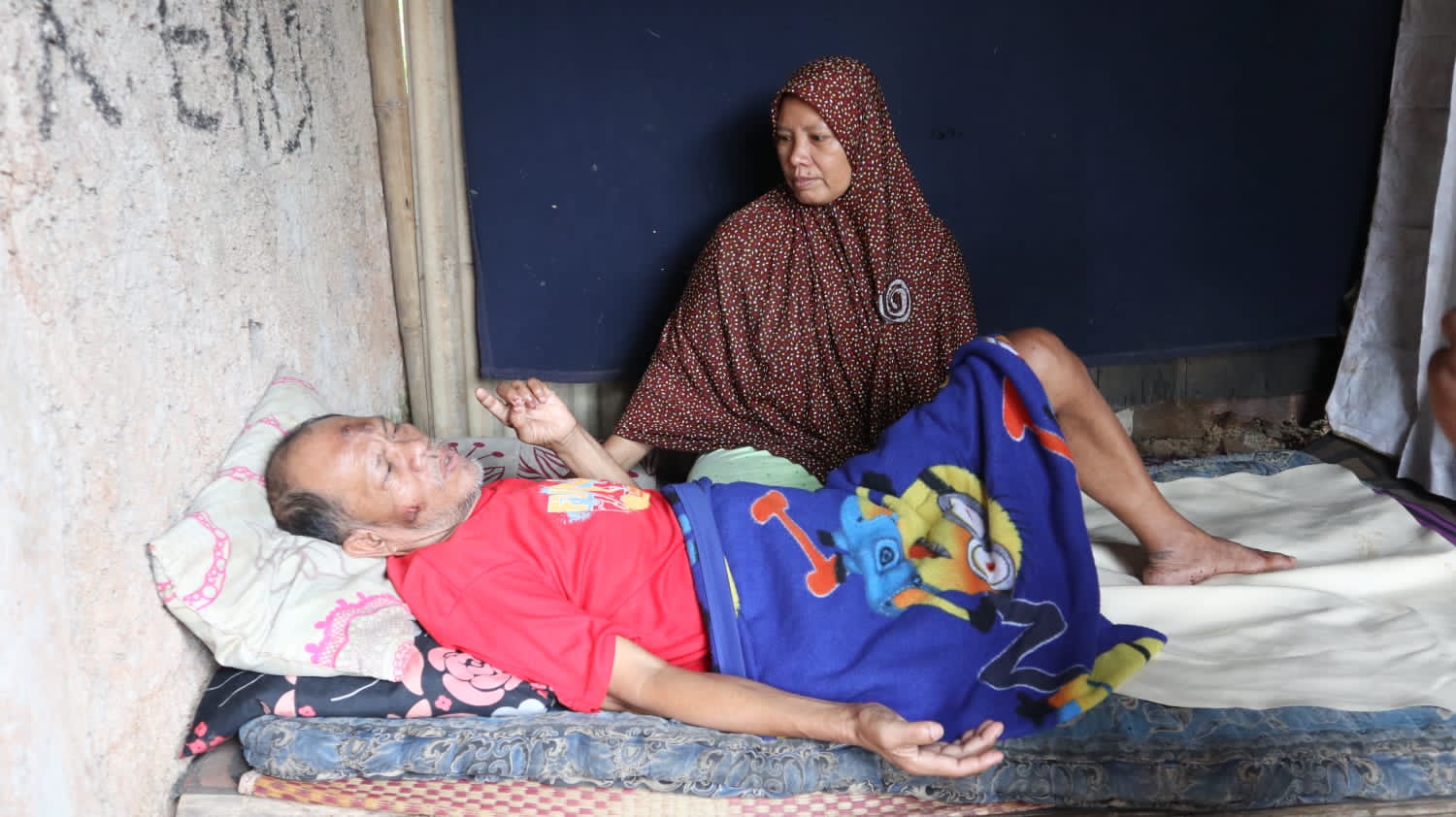 Inilah keseharian yang dialami oleh pak Ujang Gopar (56 tahun) dalam setiap harinya. Rasa sakit yang tiada tara dibadannya belum juga hilang.