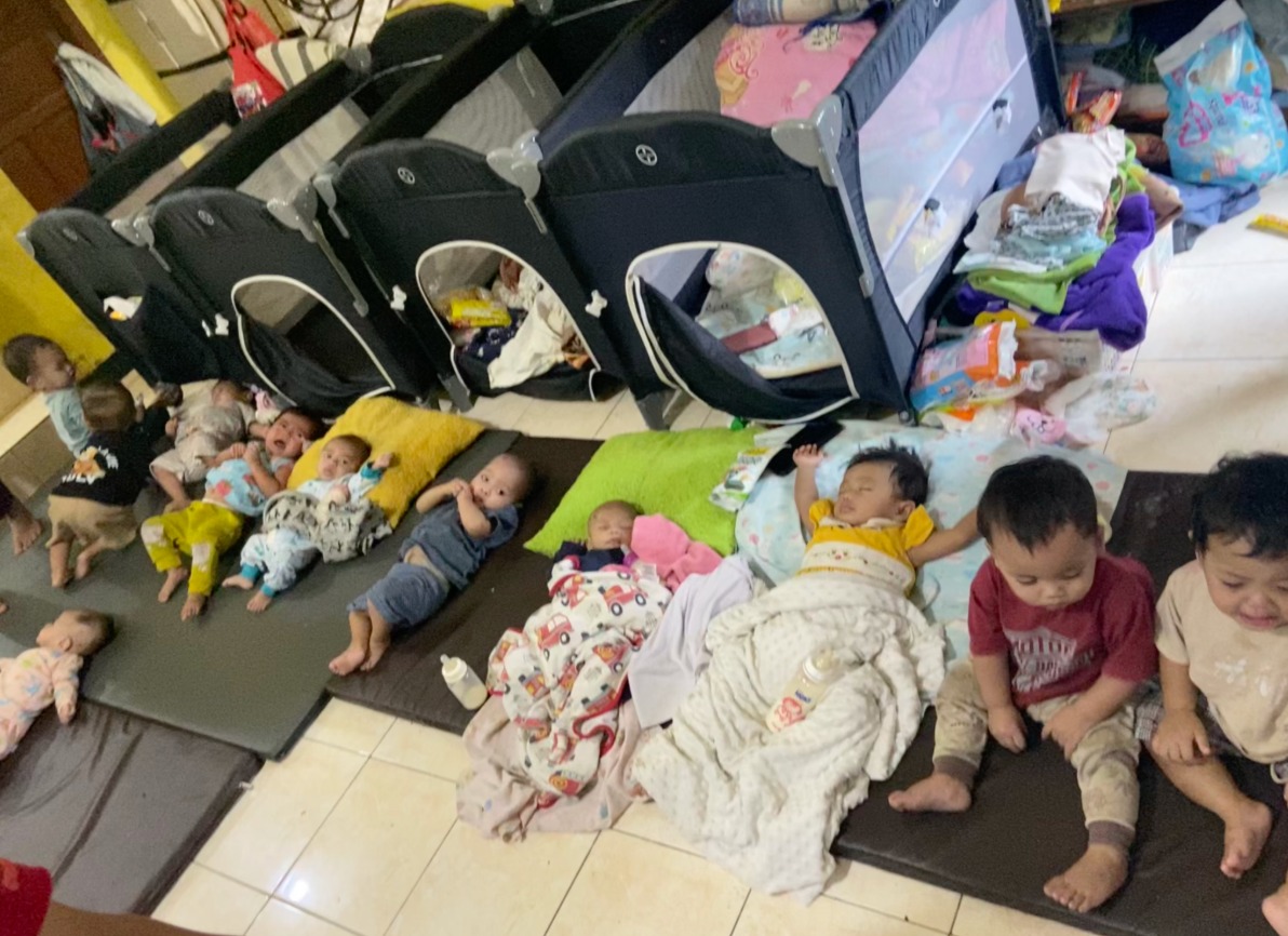 Lebih nyesek lagi… kondisi panti sekarang penuh sesak. Karena ruangannya sempit, bayi-bayi harus tidur berdesakan di ruang tengah. Kalau ada satu yang sakit, gampang banget menular ke yang lain.