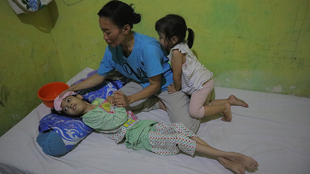 Nada yang telah berusia remaja tak bisa bermain ataupun beraktivitas seperti anak-anak lain seusianya. Ia hanya bisa terbaring setiap hari ataupun berada dipangkuan sang Ibu seperti saat ini.