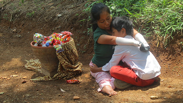 Di bawah teriknya panas matahari, terlihat seorang anak susah payah memindahkan tubuh ibunya yang terhalang bebatuan. Aldy (10) senantiasa membantu ibunya, Sumarni (28) yang merupakan seorang difabel untuk berjualan makanan ringan keliling kampung di tengah hutan.