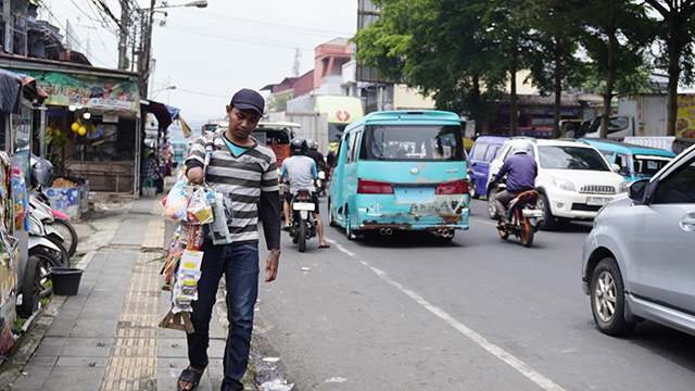 Di tengah panas terik siang, seorang pria muda tampak berjalan tertatih membawa barang jualannya, aksesoris sederhana seperti gelang, kalung, gantungan kunci. Tangannya hanya satu. Tapi langkahnya tak berhenti. Itulah Ari Saputra (29), ayah dan anak yang kini menanggung hidup keluarganya seorang diri.