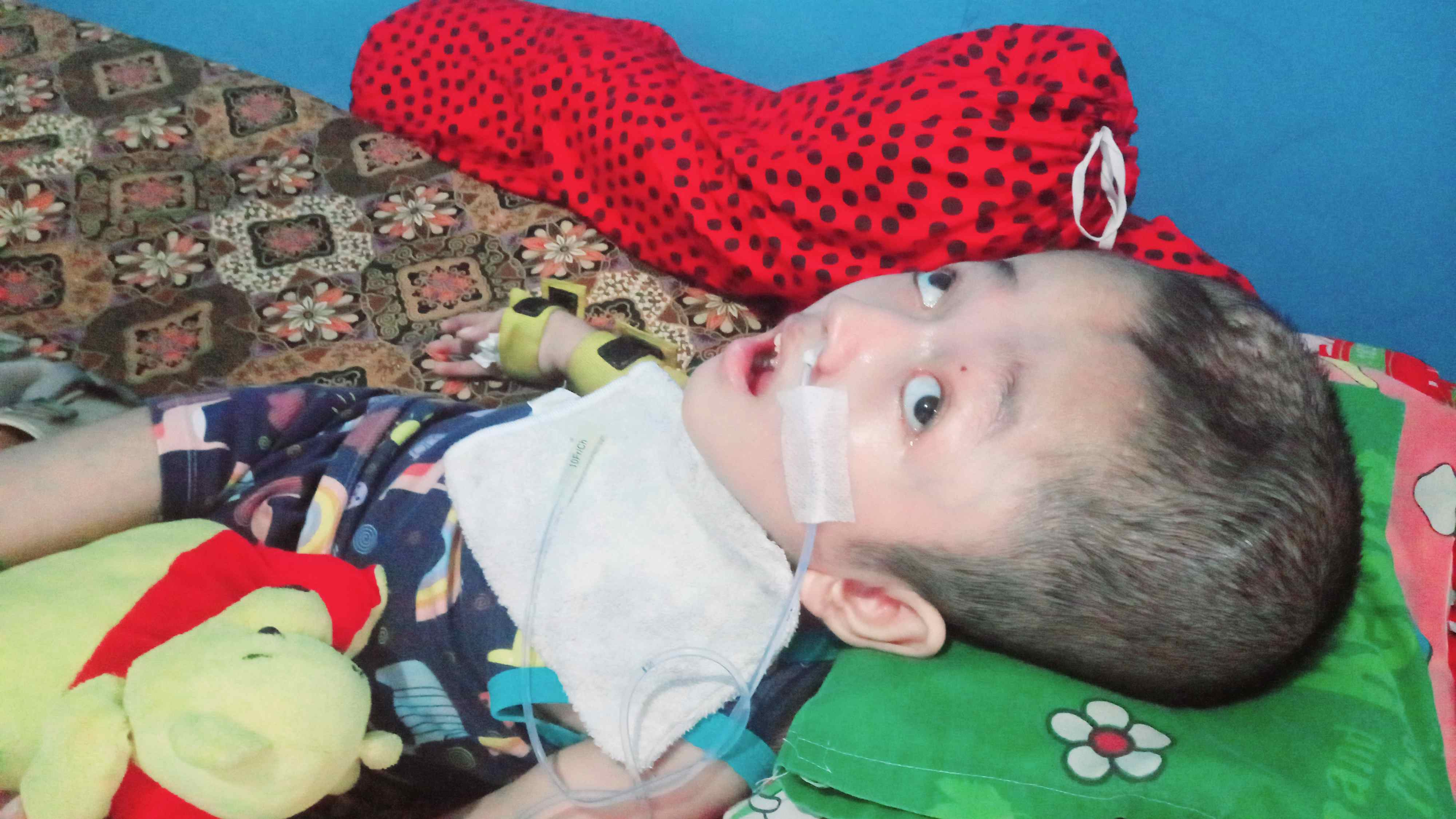 Rafi bocah kecil ini harus terbaring karena Hidrosefalus, Epilepsi, Cerebral Palsy dan Tuberculosis yang bersarang di tubuhnya saat usia satu bulan.