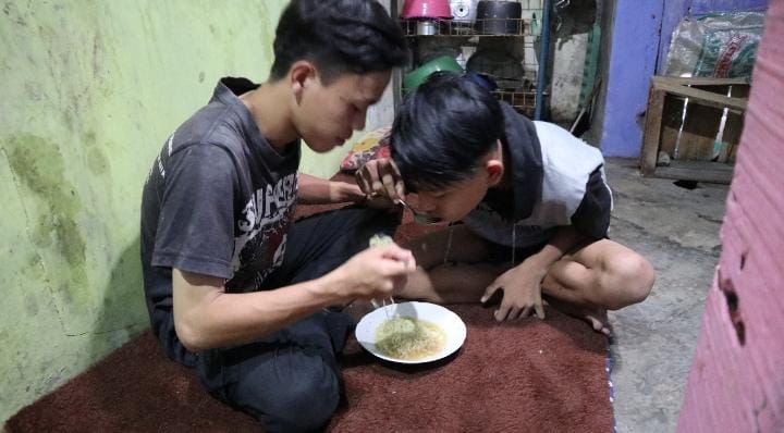 "Dulu di suruh makan saja ogah-ogahan kak, sekarang tak jarang kami harus tidur dengan perut lapar dan harus puas makan satu mie instan berdua untuk satu hari" Rendy mengisahkan sambil berusaha menyembunyikan kesedihan nya."