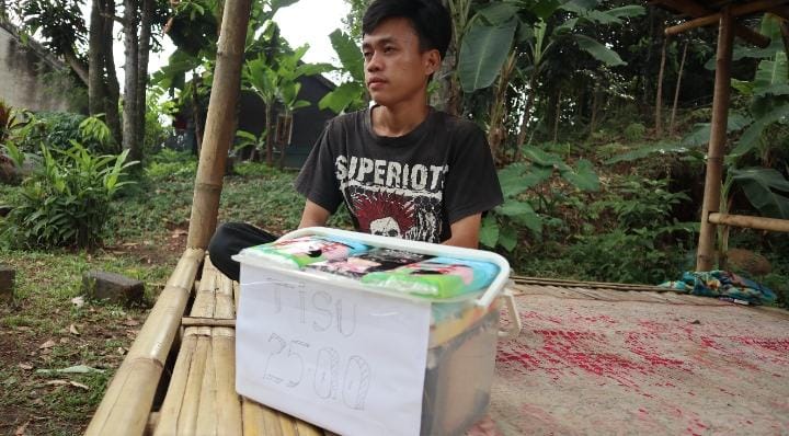 "Ada tawaran kerja jaga toko di jakarta, tapi siapa yang merawat adik saya. Yang ada sekarang jualan tisu saja, ini juga saya ngambil lagi dari orang lain" Ungkap Rendy