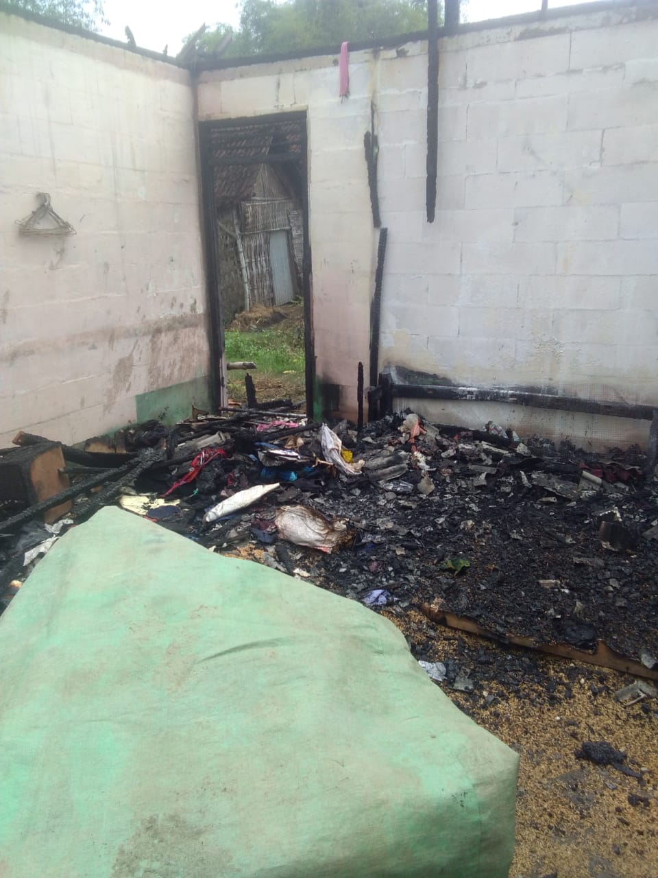 Sesampainya di rumah dia mendapati rumahnya yang baru saja mendapatkan bantuan Rumah Layak Huni dari PEMKAB Bojonegoro tinggal puing-puing. Termasuk perabotan, identitas pribadi, dan hampir semua perabot rumah tangga ludes termasuk seluruh pakaian. Beruntungnya sepeda Motor masih sempat diselamatkan.
