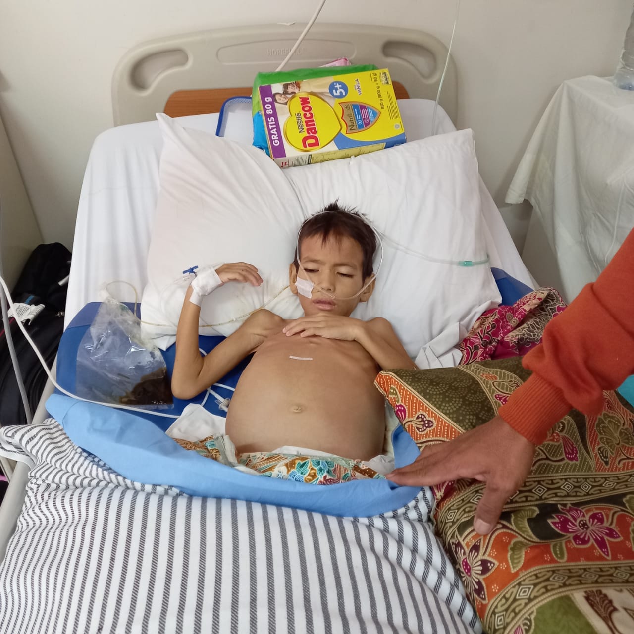 Di balik perut besar Restu (7 tahun), ada tumor yang menutupi seagian ginjalnya. Desakan itu mengakibatkan organ lainnya sulit berfungsi dengan baik, hingga tubuhnya berada di fase kritis. Restu pun menjadi kurus dan tulang rusuk mulai terlihat ke permukaan kulitnya.