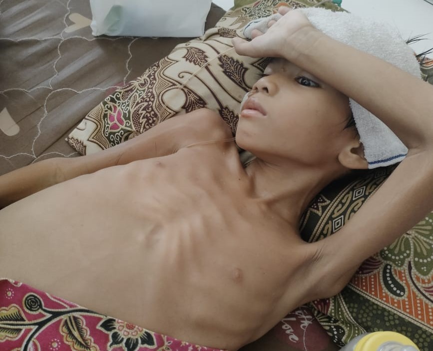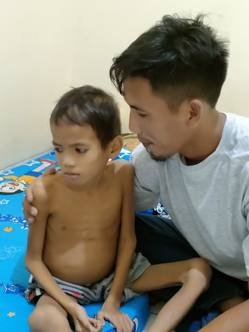 "Saya tidak kuat melihat anak saya menjadi kurus seperti ini. Akhirnya saya pakai tabungan dari hasil nguli untuk berobat dan membeli tiket ke Jakarta. Tapi ternyata itu tidak cukup, padahal Restu harus operasi dan minum susu khusus 8 kali dalam sehari"