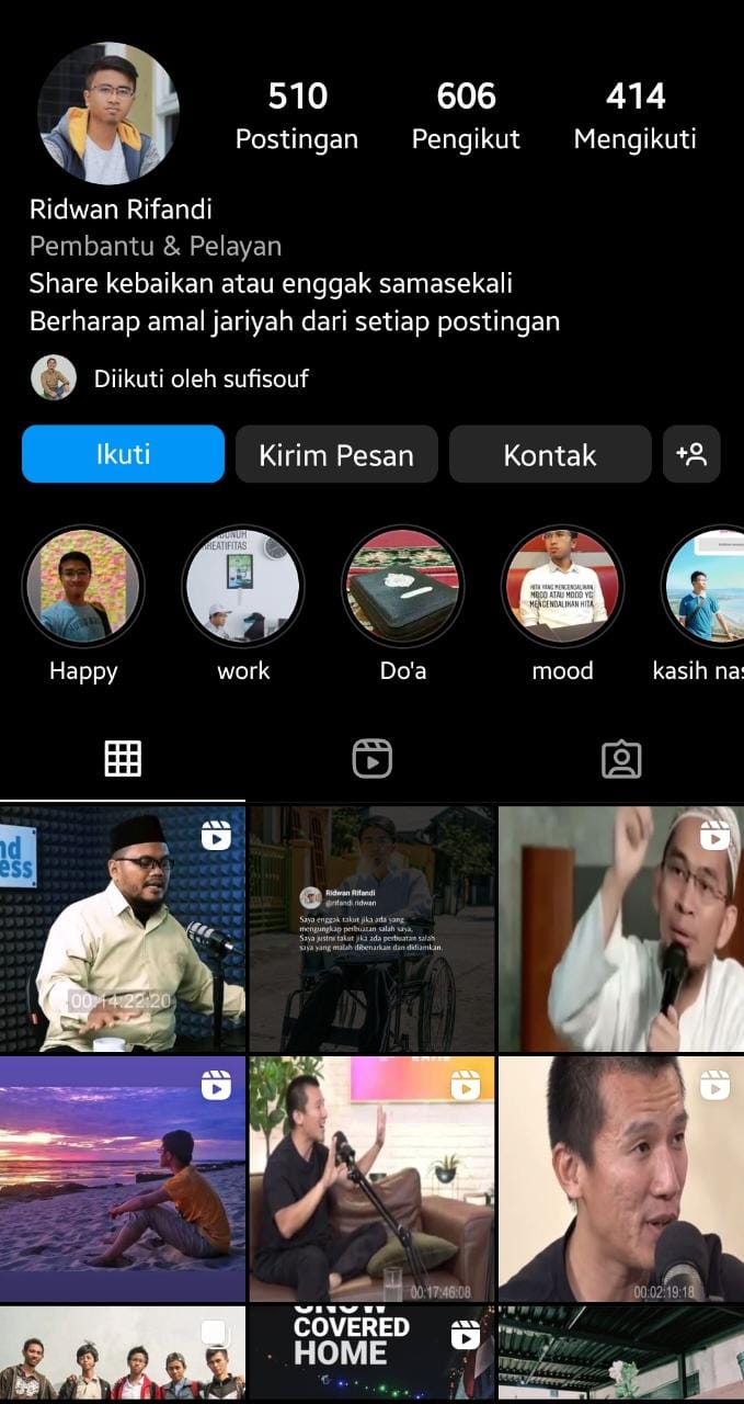 Sebelum sakit, Ridwan sering posting konten berdakwah lewat sosmednya. Dia punya prinsip “share kebaikan atau nggak sama sekali”, subhanallah mulia sekali.