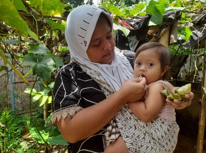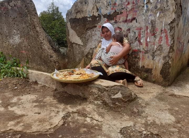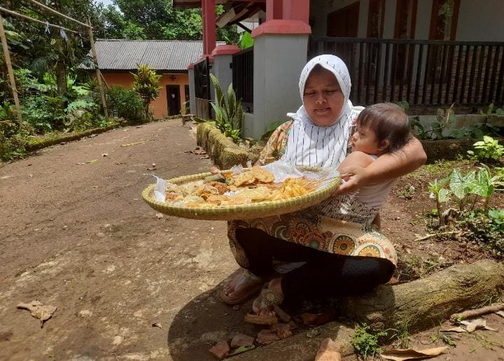 Keringatnya terus bercucuran sambil menggendong Rika dan membawa gorengan dagangannya. Tak pernah mengenal kata lelah, yang terpenting kedua anaknya bisa makan.
