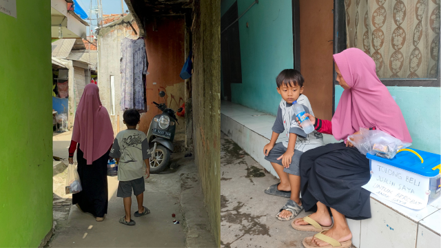 “Cuma jual onde-onde mah neng sehari cuma dapat 100 ribu, itupun uangnya diputar lagi untuk modal hari berikutnya. Kalau Riko ke RS yaa saya gak jualan neng "