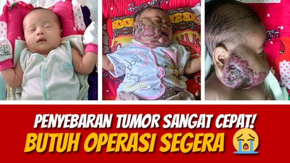 Bermula dari muncul bercak merah di pipi sebelah kanannya yang dianggap biasa namun, bercak merah itu menjadi benjolan yang semakin membesar dan membusuk hingga akhirnya dokter menyatakan bayi kecil ini menderita tumor pipi.
