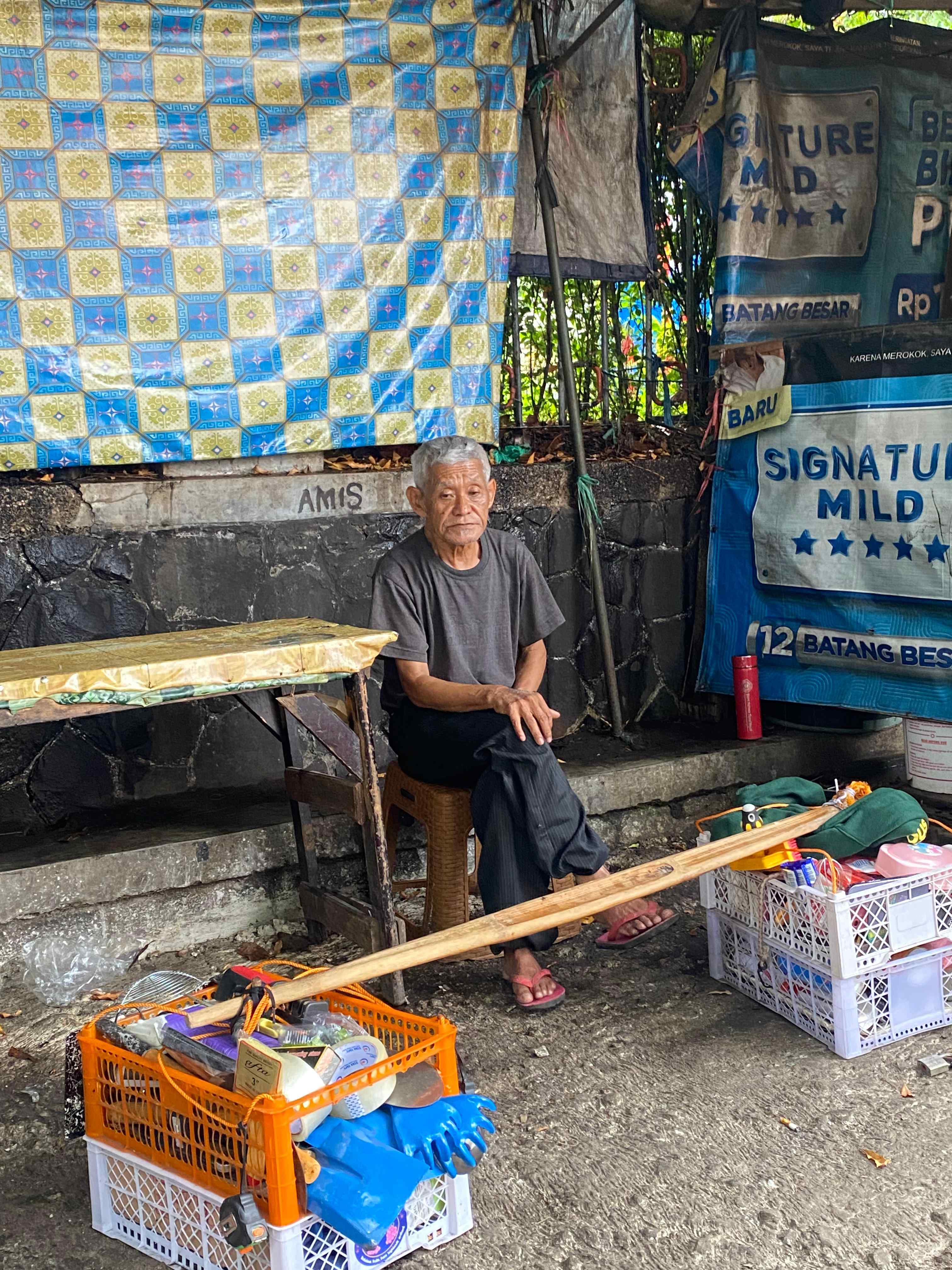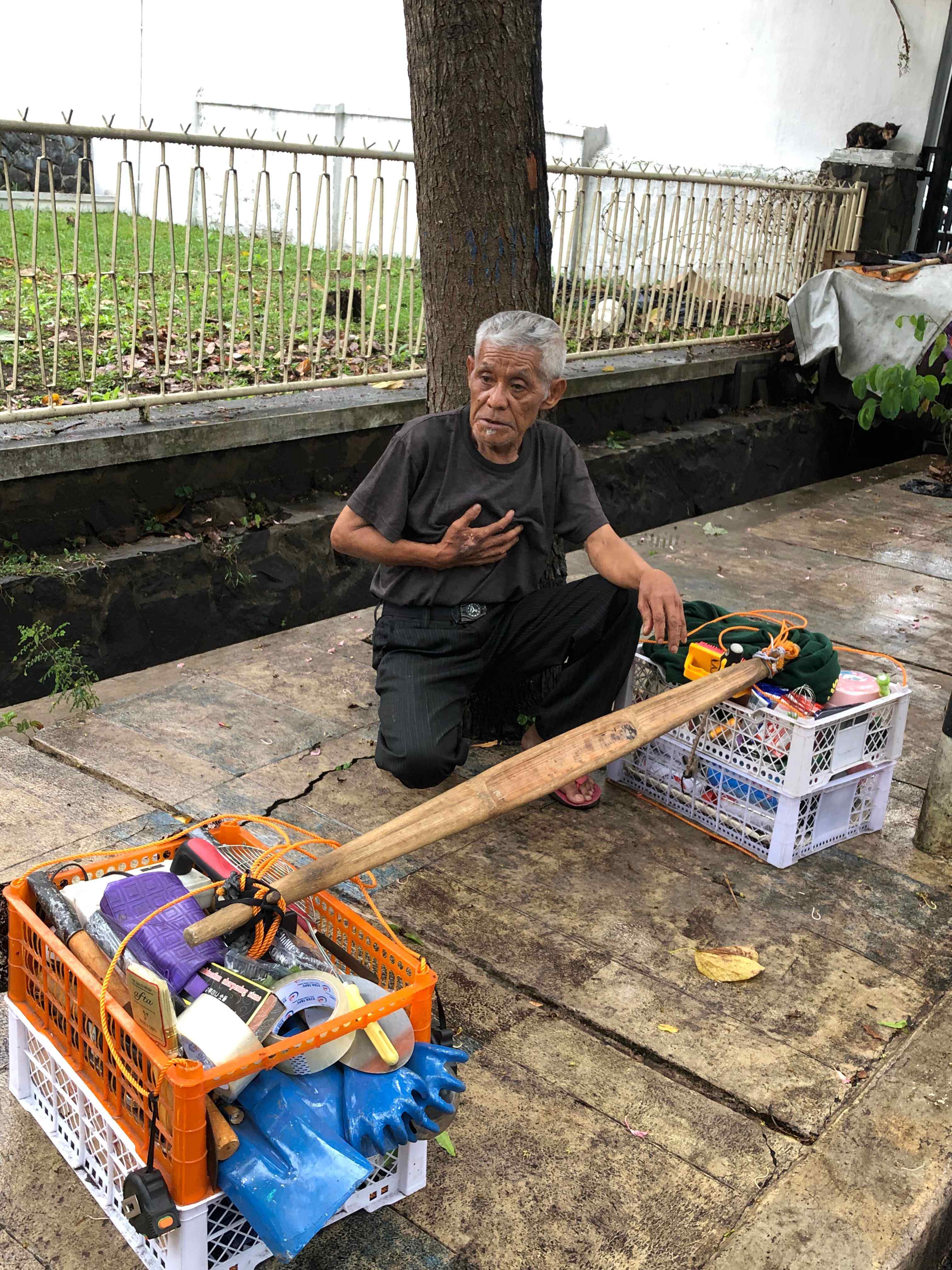 Abah Emen lansia berusia 76 tahun, masih berjuang keras untuk bertahan hidup. menawarkan dagangan meski tubuhnya ringkih udah gak berdaya memanggul beban yang cukup berat.