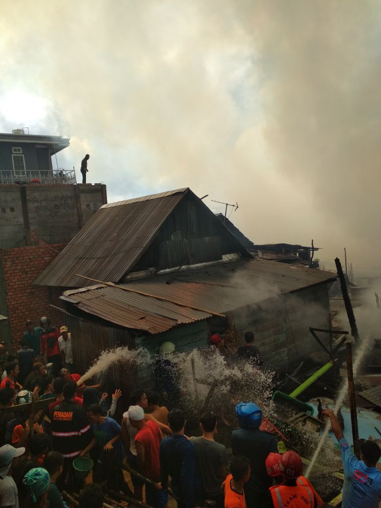 Kondisi rumah yang terbuat dari kayu membuat api cepat menjalar sehingga sulit dipadamkan. Setelah tujuh unit mobil dari dinas pemadam diturunkan, api akhirnya berhasil dijinakkan. Warga sempat berupaya memadamkan api, namun karena kondisi bangunan dari kayu, api pun cepat membesar.
