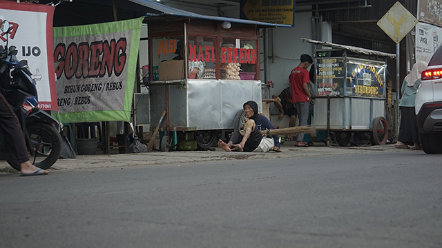 "Udah 5 tahun Emak ngesot, cuma hidup sendiri gak ada yang ngurus.. harus bisa usaha buat bertahan hidup", ujar pasrah terucap terengah oleh binar mata yang kosong itu.