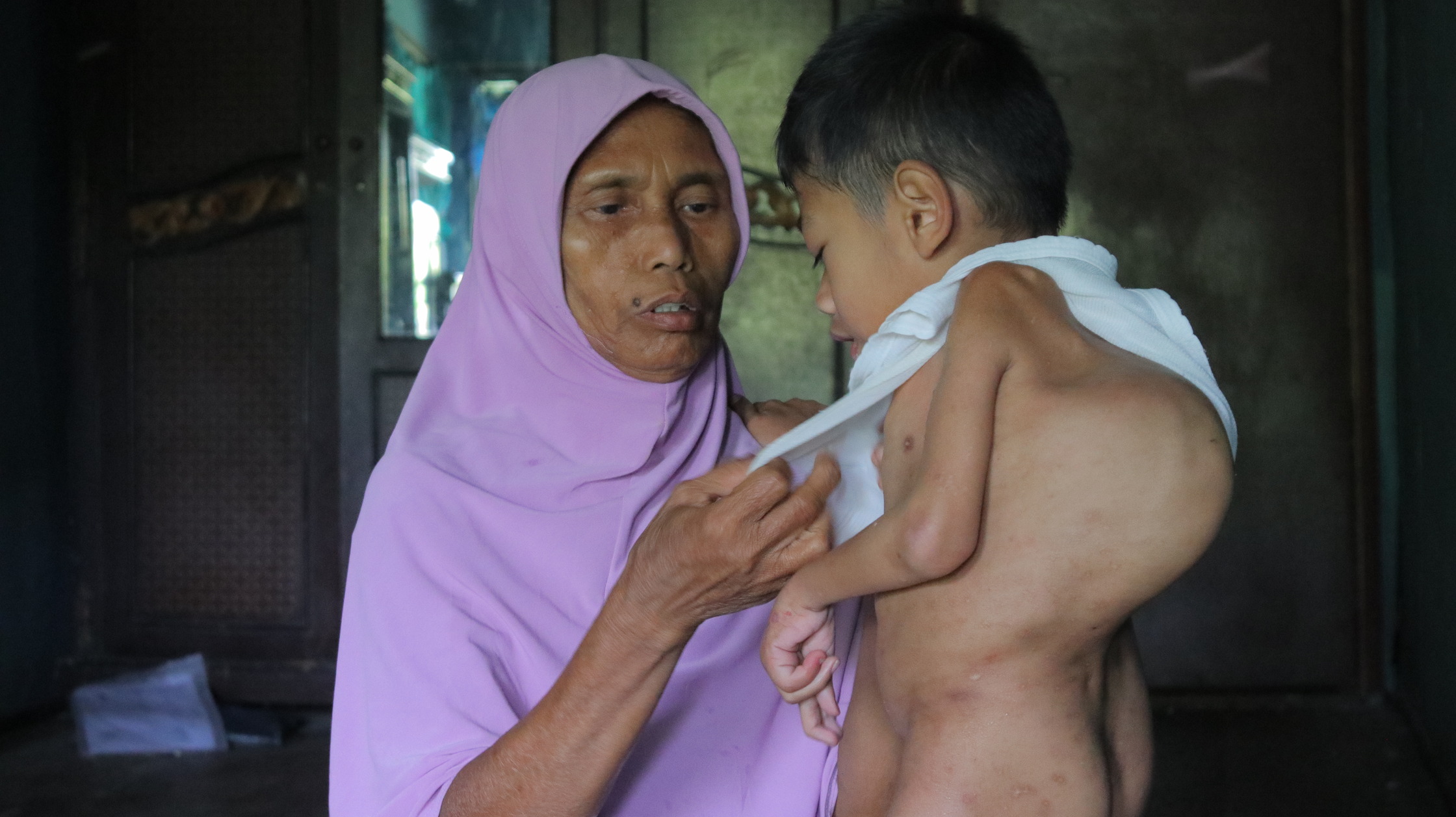 Dengan tertatih, bahkan terjatuh Adit berjalan menyusuri setiap langkah menuju sekolah. Jalan yang cukup terjal serta jarak yang jauh kerap membuat Adit sesekali beristirahat. Semangatnya tidak pernah surut, benjolan di punggungnya menjadi saksi tekad baik Adit untuk perjuangan.