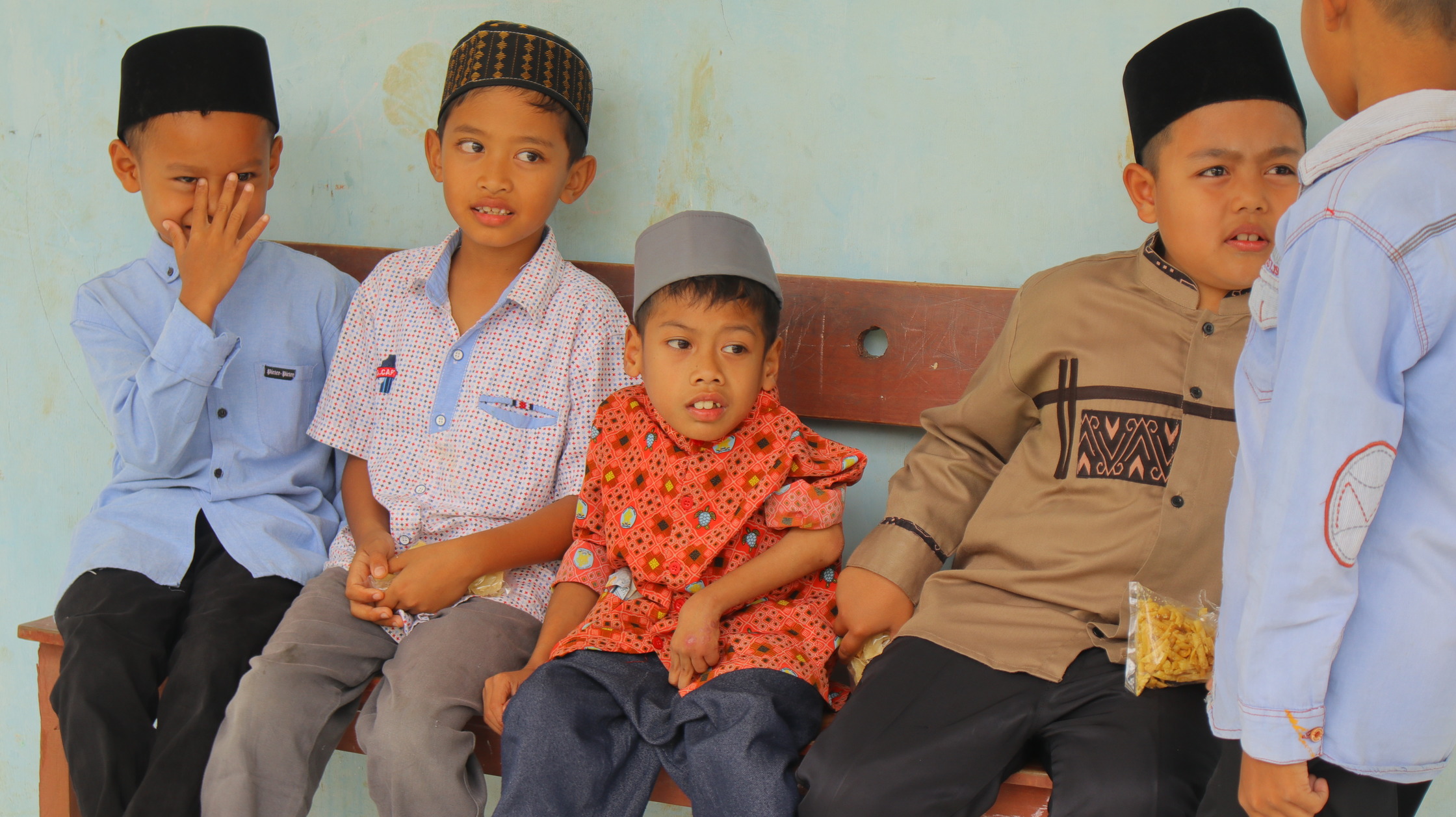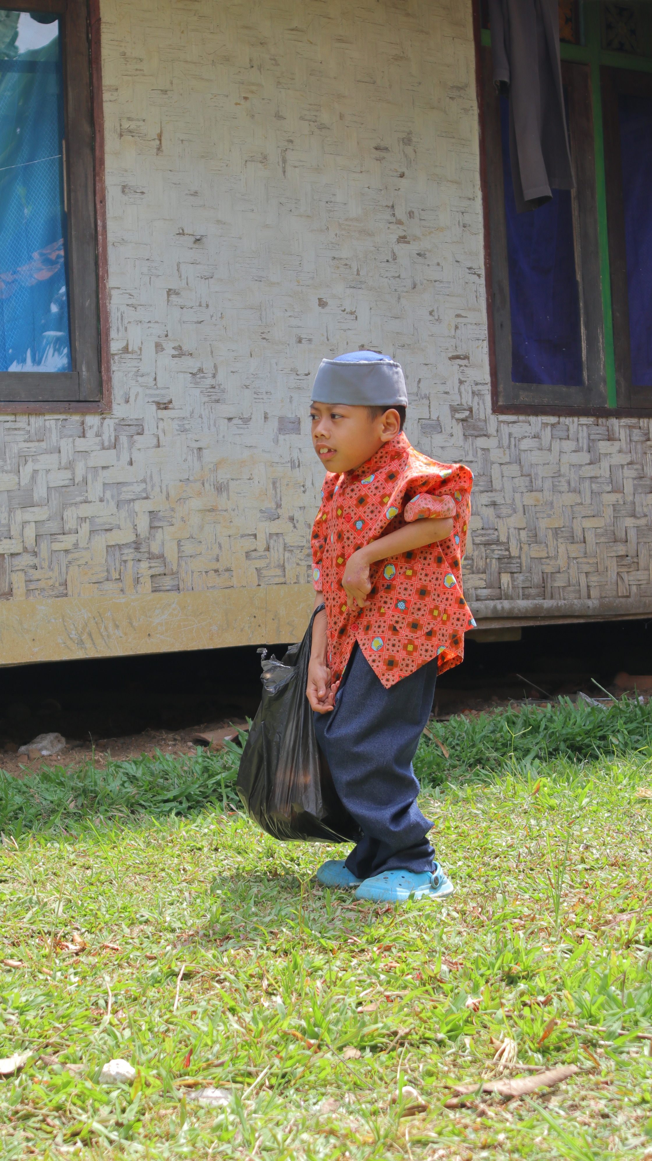 Ada pemandangan berbeda di sebuah sekolah agama yang aku kunjungi hari itu. Dimana salah satu muridnya memiliki fisik yang nampak berbeda dengan yang lain, tubuhnya kecil, kurus dan ada benjolan besar di punggungnya.