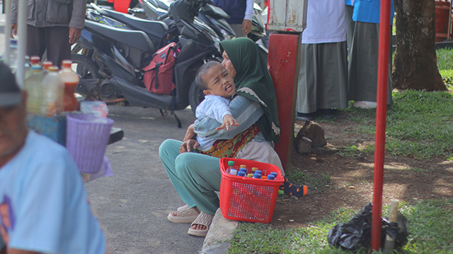 " Setiap hari saya berjualan keliling menawari siapa aja yang lewat, demi bisa dapat uang untuk kebutuhan popok dan susu anak saya. Pengennya saya bawa dede terapi lagi ke rumah sakit, karena terakhir jberobat udah bertahun2 lamanya" ungkap Bu Iis dengan bibirnya yang bergetar berusaha menahan tangis.