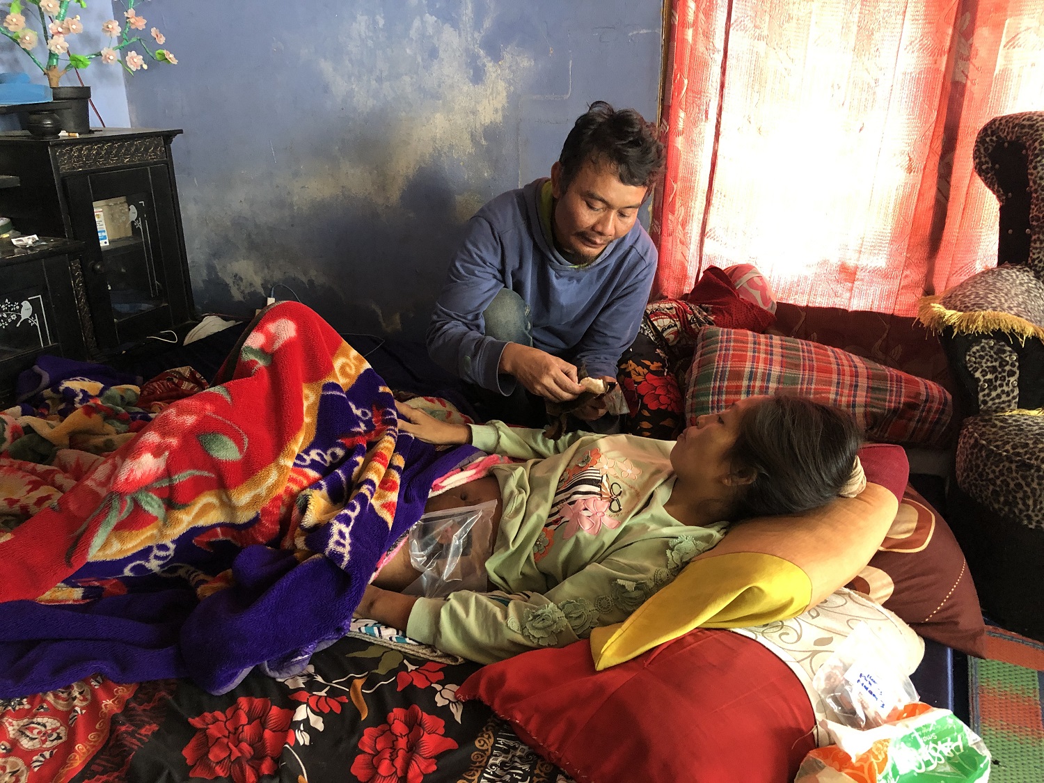 “Saya sedih, saya ga bisa beliin istri saya kantong kolostomi untuk buang kotorannya. Jadi saya buat dari kantong plastik untuk bikin es batu. Penghasilan saya dari mengemas hasil tani sedikit.” – Agus Rumana, Suami Bu Ika