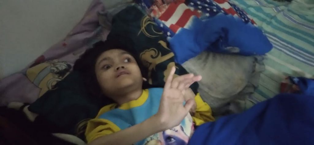 “Aki terpaksa menjual becak satu-satunya yang biasa aki pakai selama puluhan tahun untuk mencari nafkah, untuk biaya berobat Bunga, cucu aki yang lumpuh dari kecil”, ujar Aki Asep (61 tahun). Dari usia 4 bulan hingga umurnya saat ini 13 tahun, Bunga mengalami kelumpuhan akibat demam tinggi dan kejang yang dideritanya.