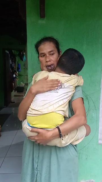 Anaknya yang tengah menangis dalam pelukannya bernama Alif (7) baru saja duduk di bangku sekolah dasar. Ia menangis setelah mendengar ejekan yang ditujukan kepada ibunya akibat kondisi ibunya yang tak biasa.