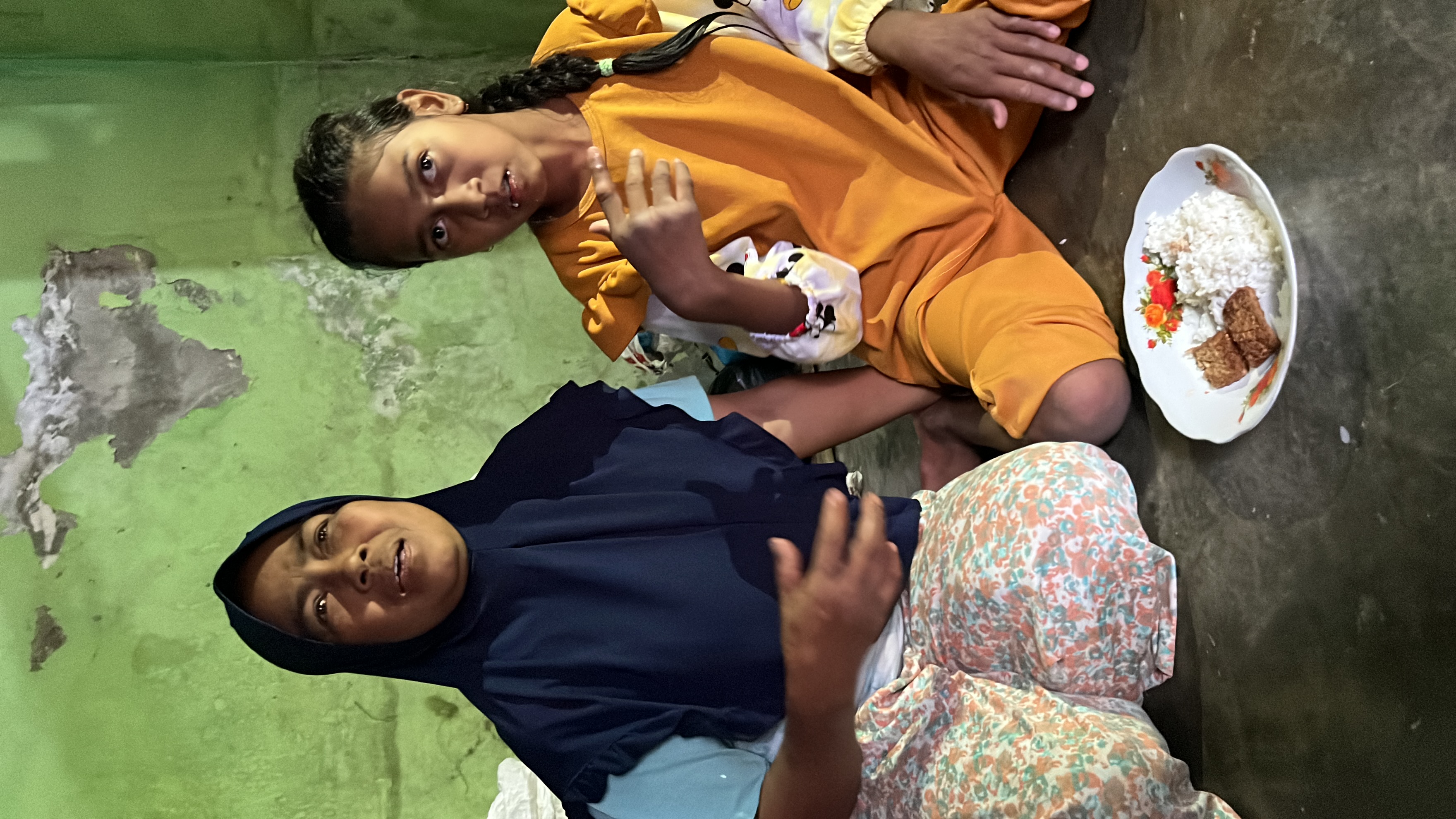 Ibu dan ayahnya buruh tani serabutan. Mereka hanya bekerja dari pagi hingga tengah hari karena harus kembali menjaga Dina yang sendirian di rumah. Penghasilan yang didapat hanya sekitar 50 – 70 ribu sehari.