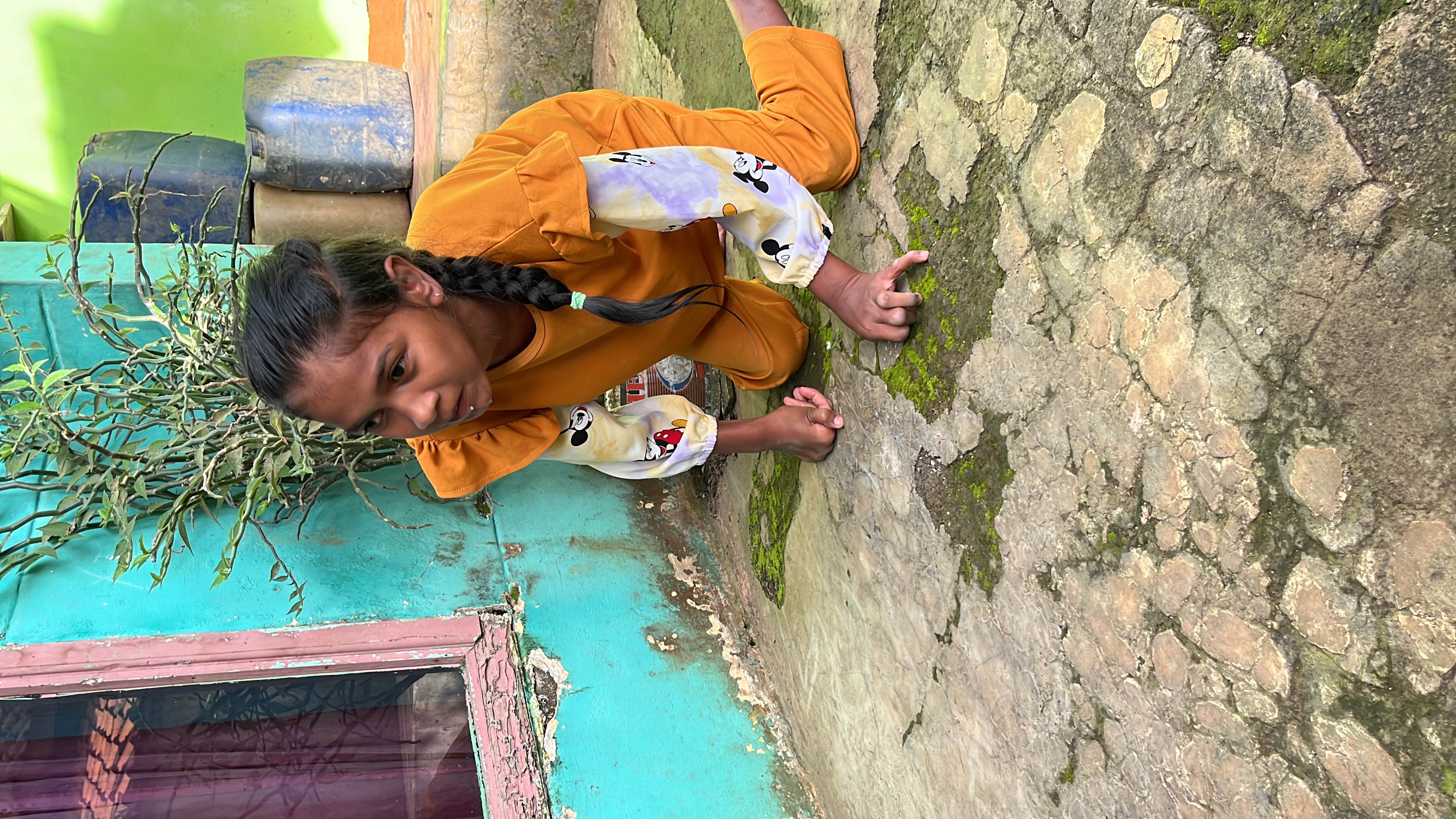 Kakinya melengkung seperti terpelintir ke dalam, Dina lahir dalam kondisi kelainan genetik langka. Tulang kakinya bengkok tak beraturan. Dina hanya bisa merangkak, tak bisa berdiri tegak. Kakinya sering luka akibat terkena gesekan tanah dan batu. Setiap hari Dina harus menahan rasa sakit. Kakinya berdarah karena harus diseret.