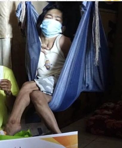 Ahmad (19) mengalami kelumpuhan saat usianya 2 tahun. Kedua kaki dan tangan Ahmad bengkok dan kaku, serta tidak bisa bicara sampai saat ini. Saat itu Pak Abdul Rosid (50) merasa aneh melihat kondisi kaki anaknya yang tidak normal.