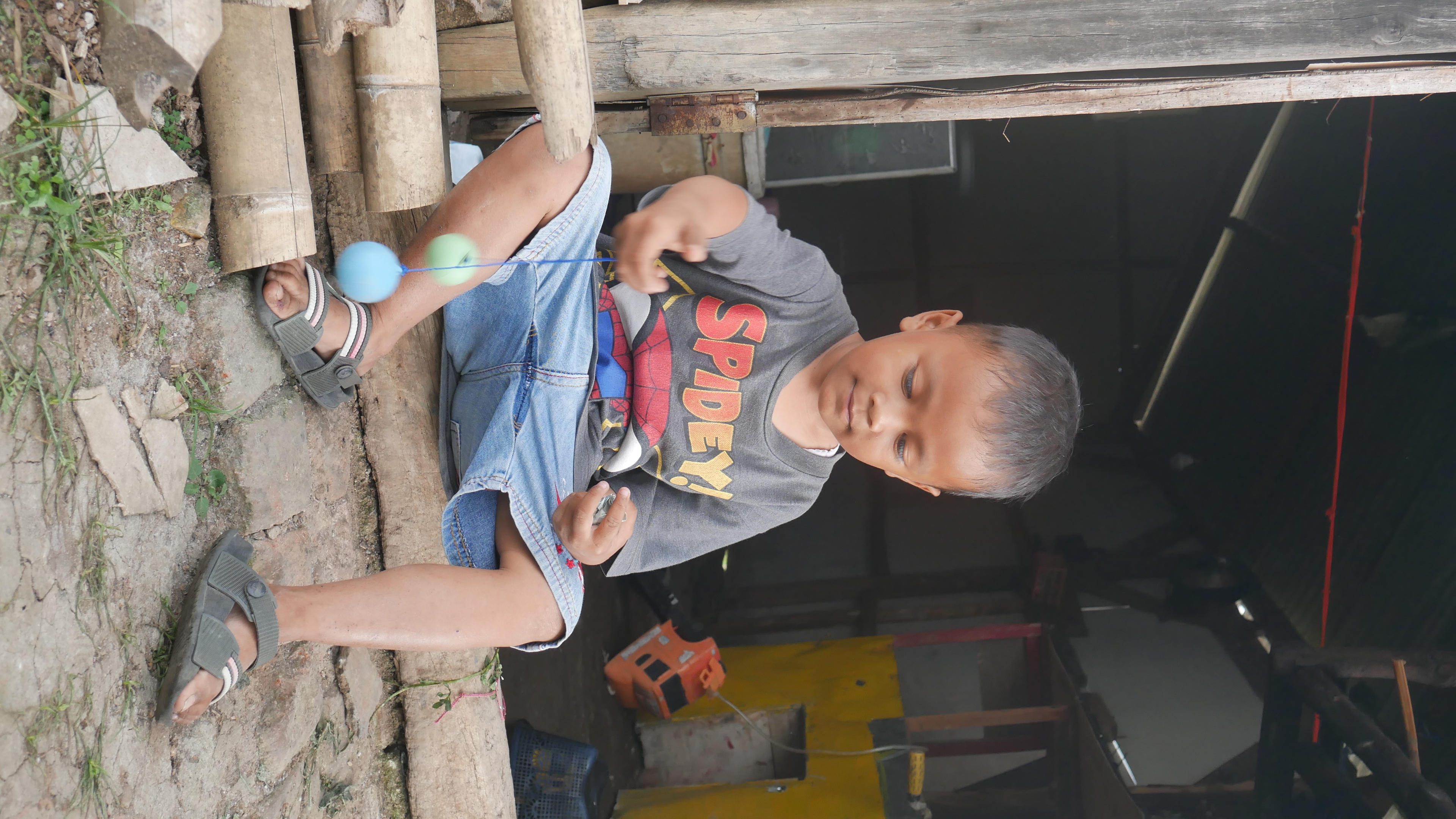 ”Aa mah cuma bisa maen Lato-lato, kalau keluar takut cape. Kalau cape takut dibawa ke Rumah Sakit“, lirih Galih, saat kami tanya kenapa tidak bermain diluar rumah.