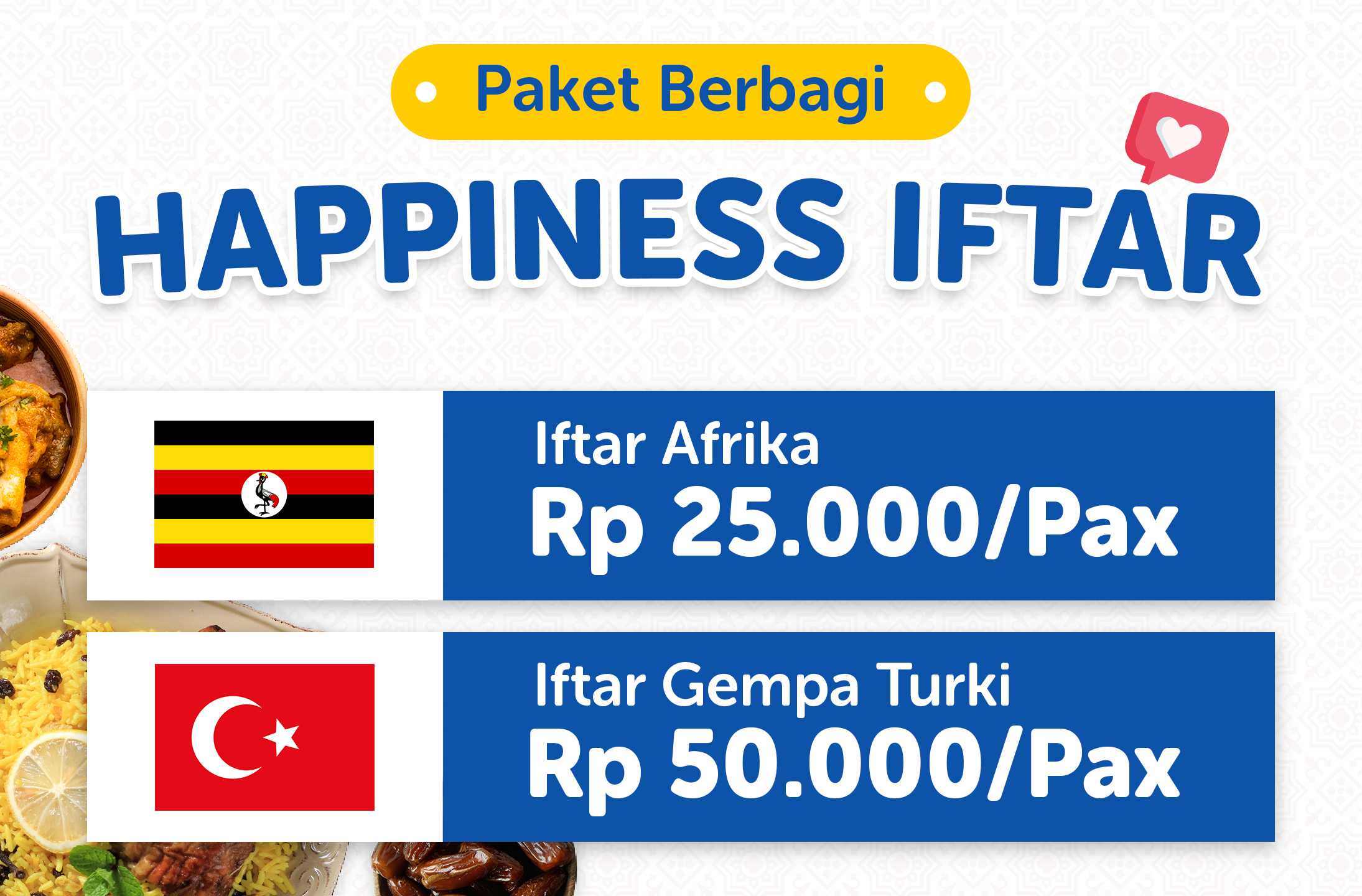 Sehingga, sayang jika kita melewatkan kesempatan berbagi di bulan penuh berkah ini, sehingga lewat program Happiness Iftar ini Kami mengajak Sahabat sekalian untuk berbagi makanan berbuka puasa.