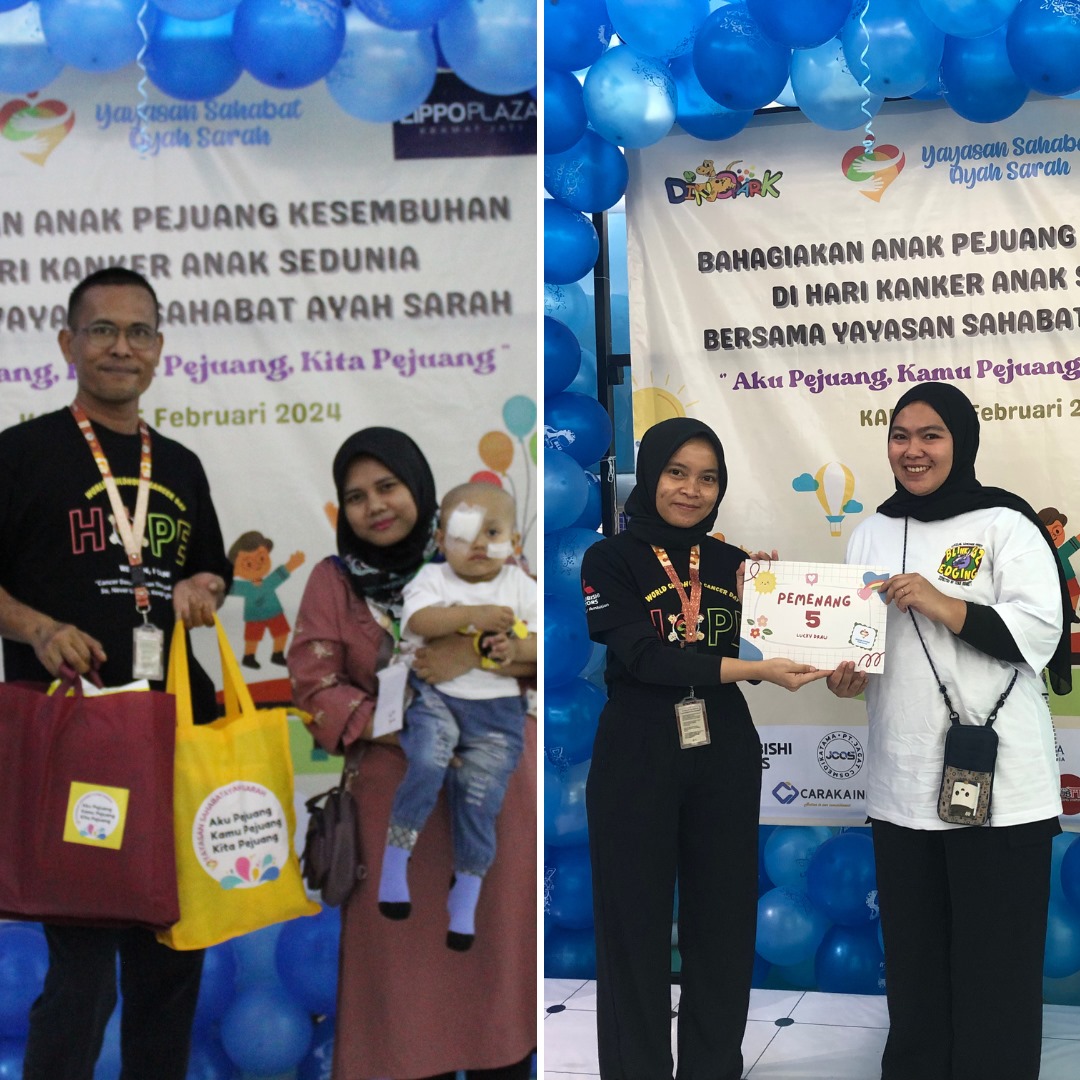 Dalam rangka memperingati Hari Kanker Anak sedunia 15 Februari 2024, Yayasan Sahabat Ayah Sarah melakukan pembagian susu, diapers, Hygiene kit, mainan anak, dan dukungan lainnya kepada anak-anak kanker dan sakit beresiko di beberapa Rumah Sakit di Jakarta.