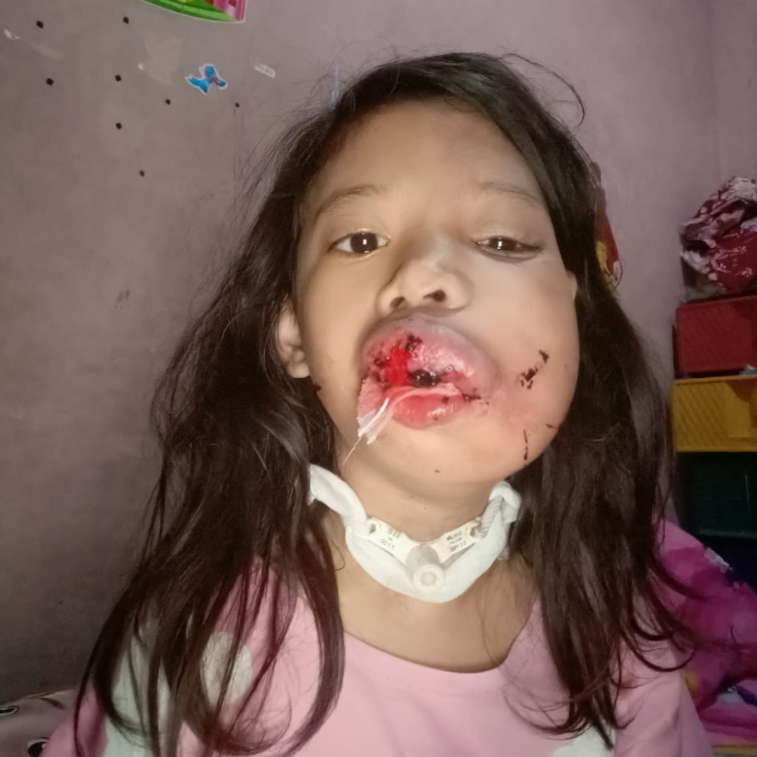 Kini, di usia yang seharusnya dipenuhi tawa dan keceriaan, Hasna harus menjalani hidup yang tak mudah. Ia harus memakai kanul tracheostomy di leher agar bisa bernafas dan harus bolak balik kontrol ke rumah sakit hingga 4 kali seminggu.